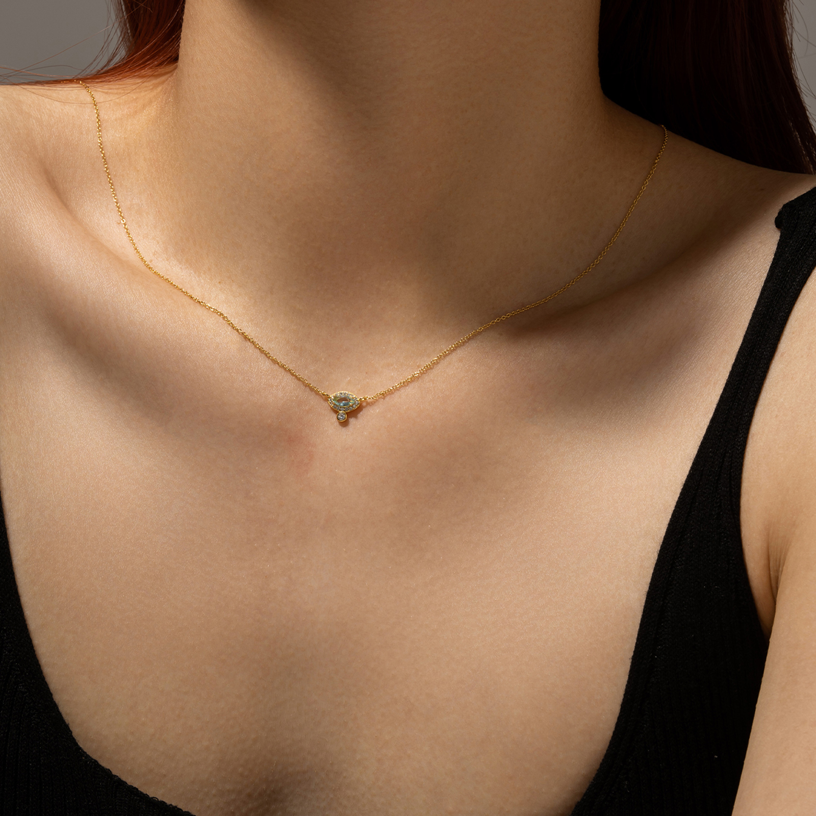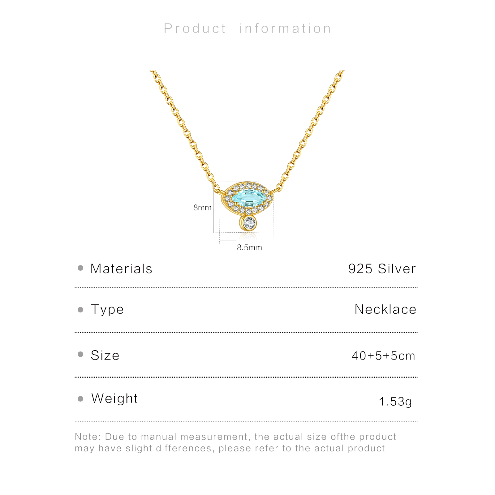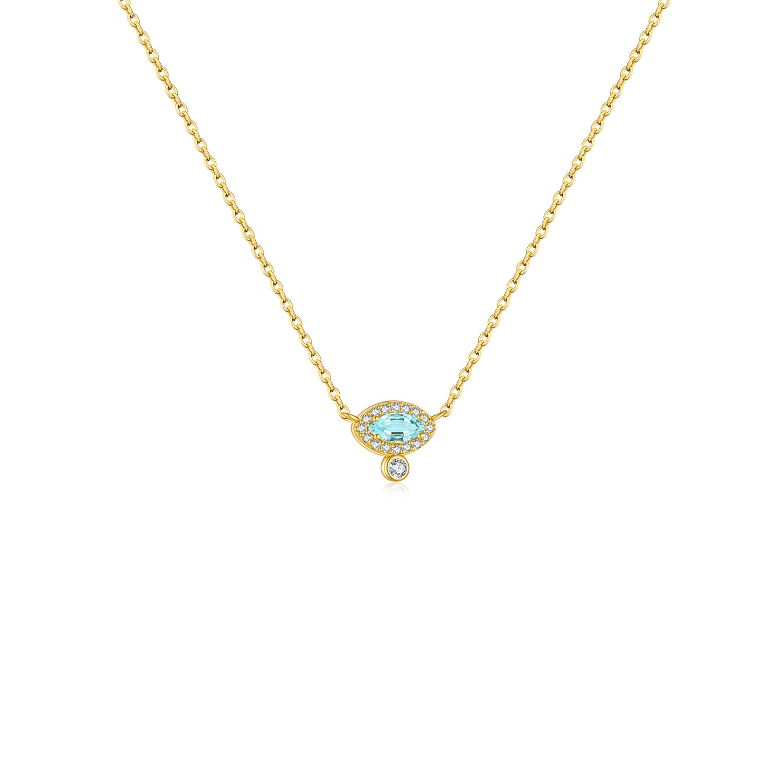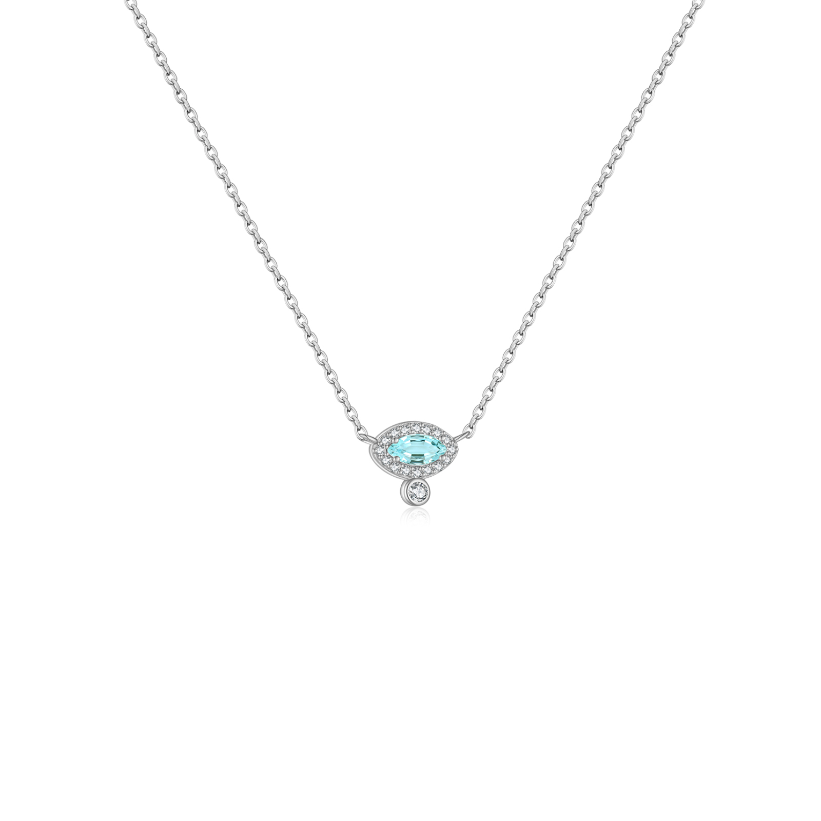 925 Silver Aquamarine Oval Pendant Necklace-MMN328