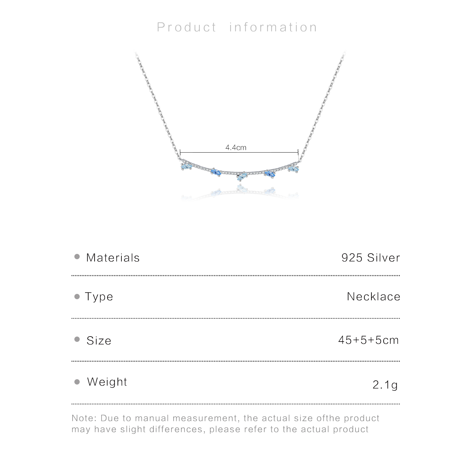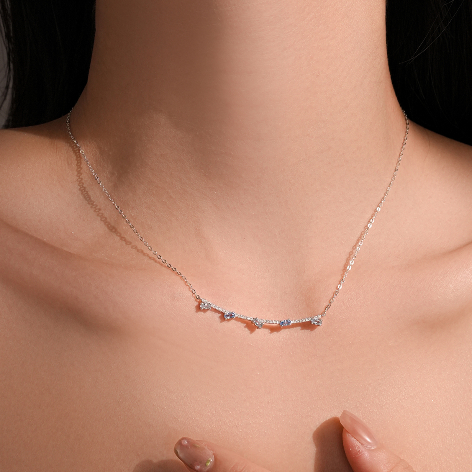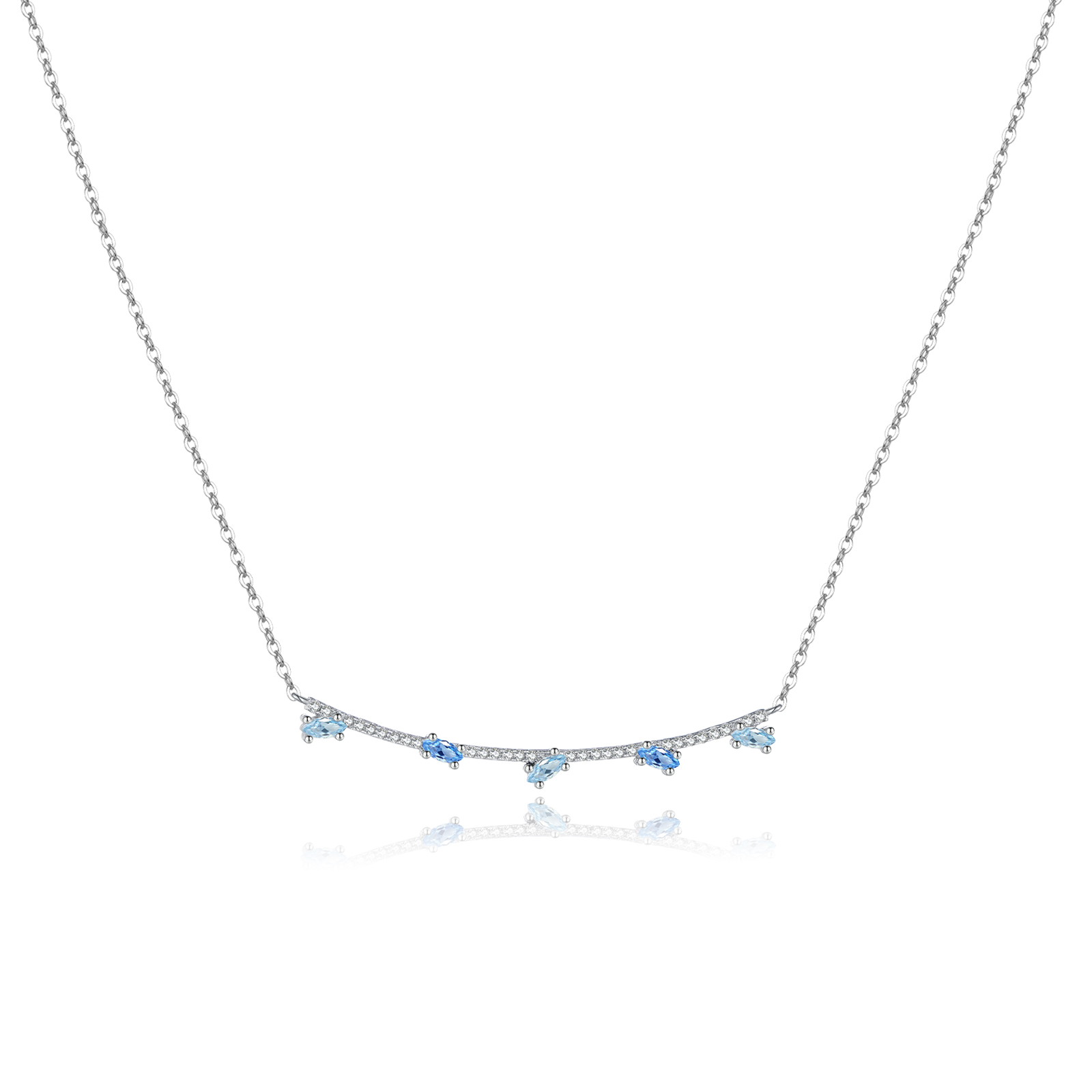 925 Silver Blue Stone Curved Bar Necklace-MMN631