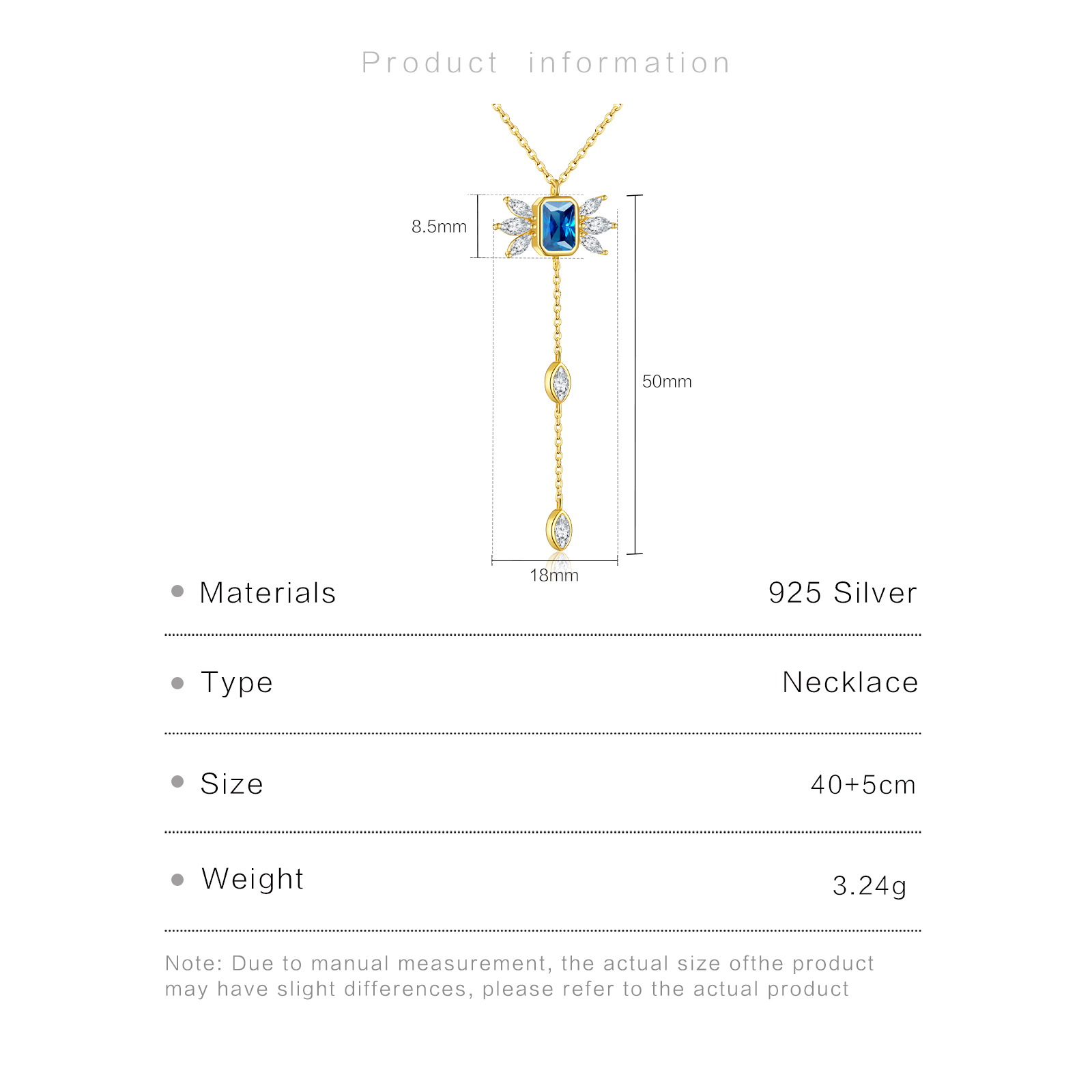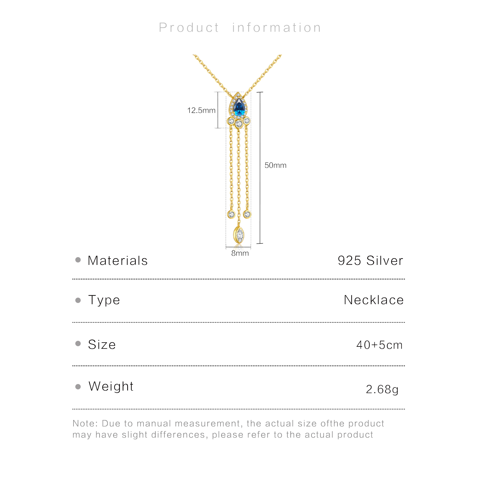 925 Silver Blue Teardrop Tassel Pendant Necklace-MMN329/MMN330