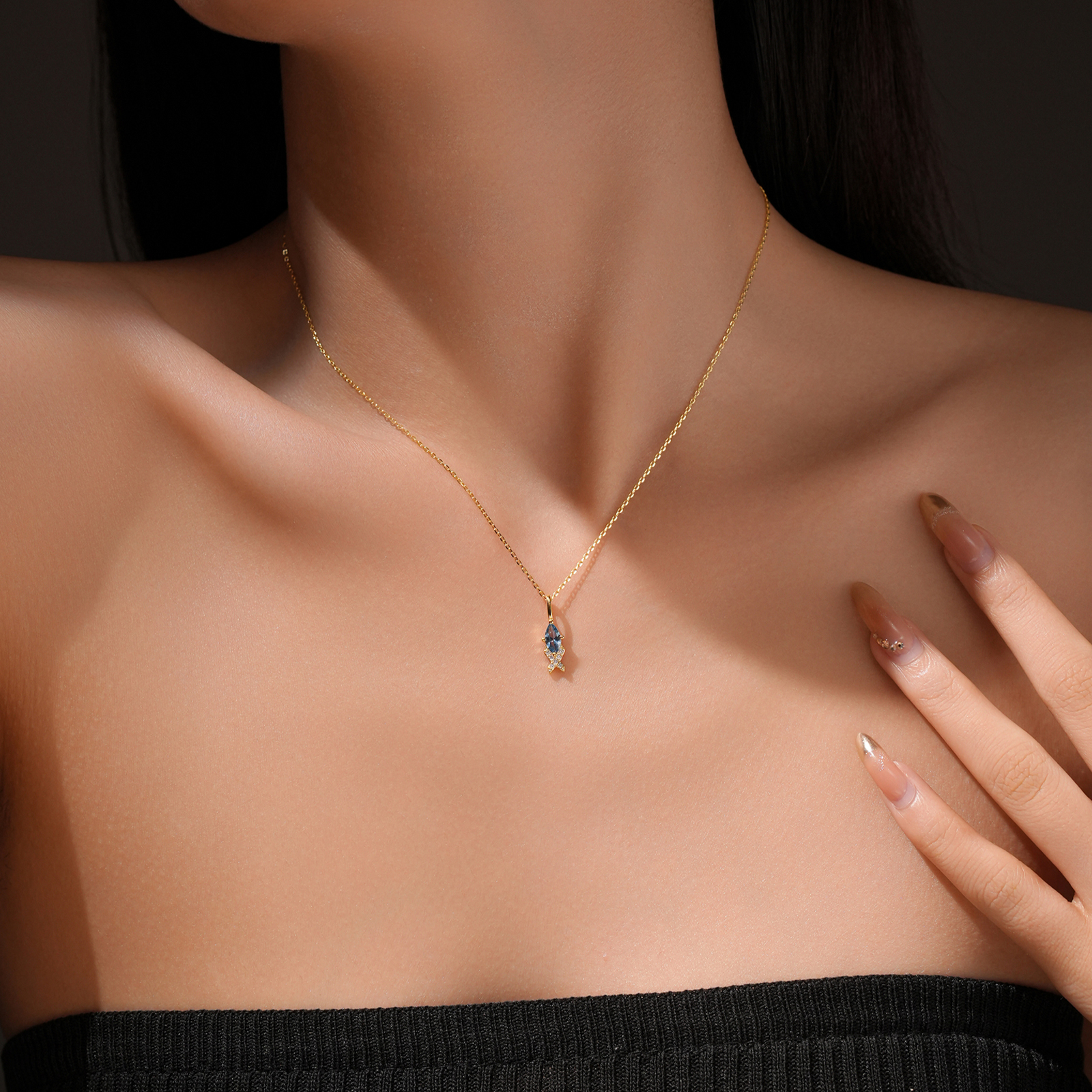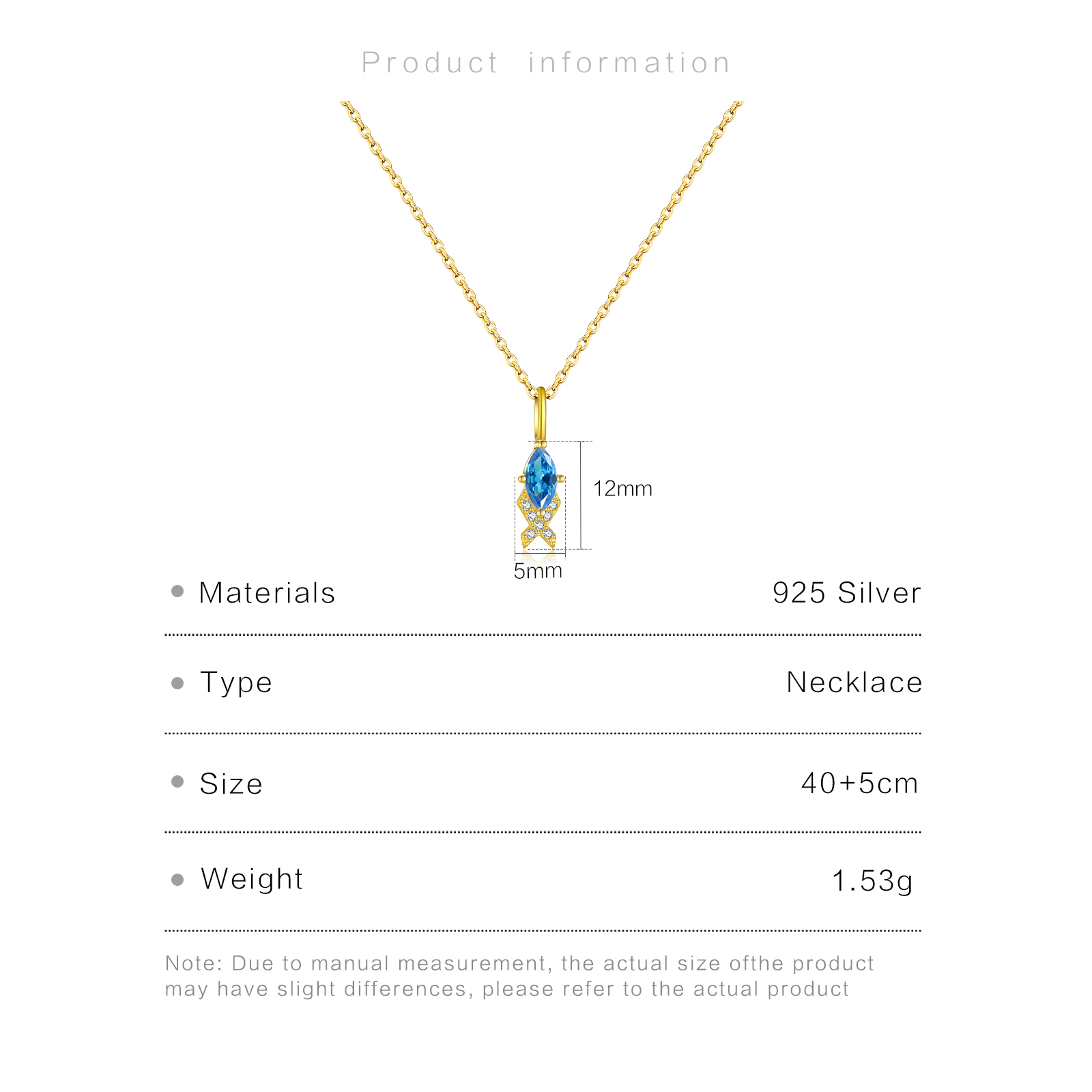 925 Silver Blue Zircon Pendant Necklace-MMN566