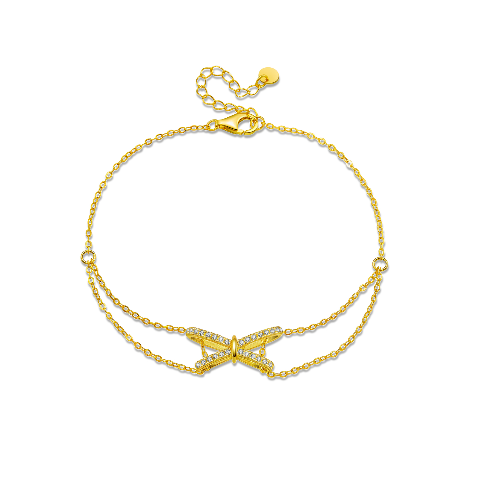 925 Silver Gold 3D Bow Bracelet, Size 16+3cm, Charm Size 8.5×18mm-MMB152