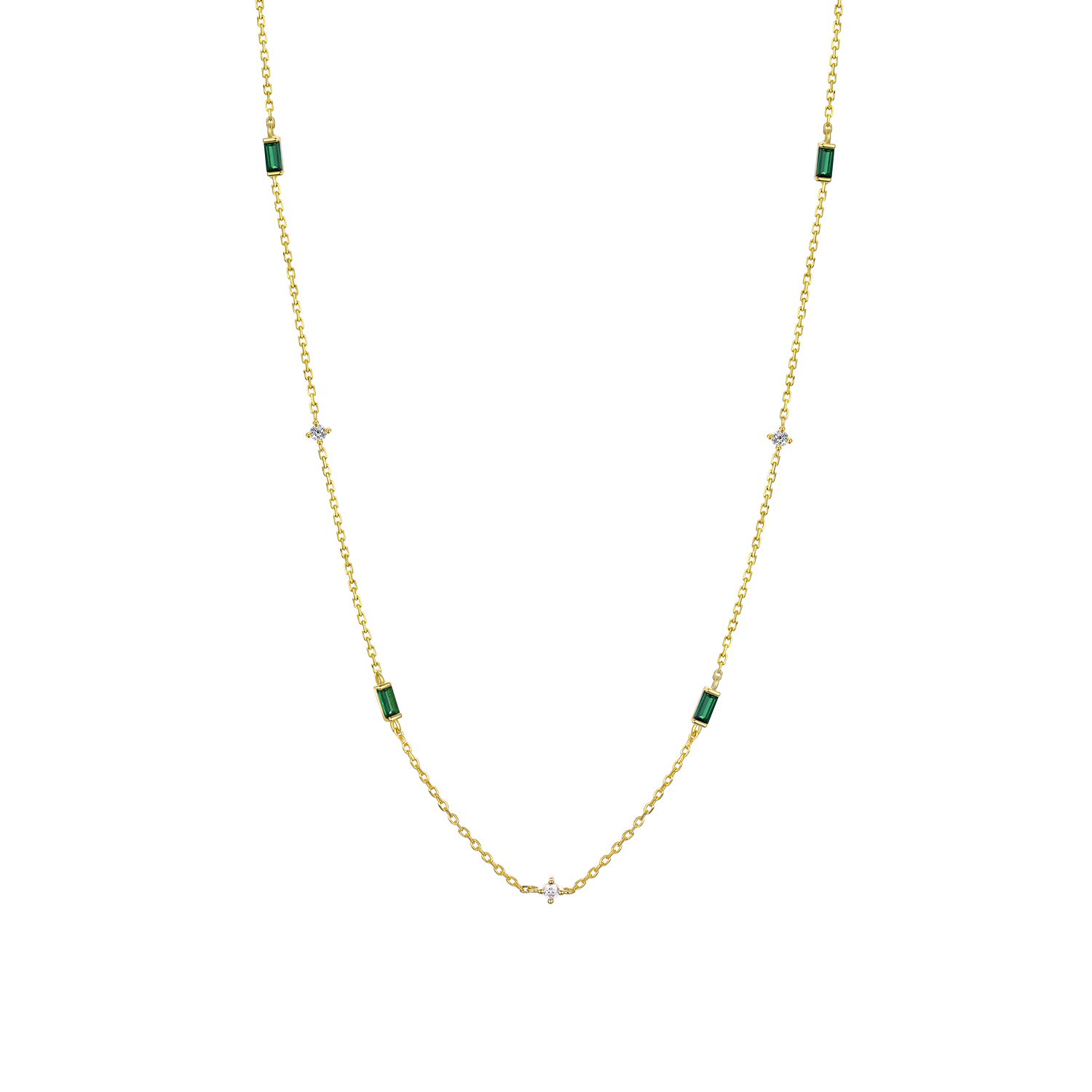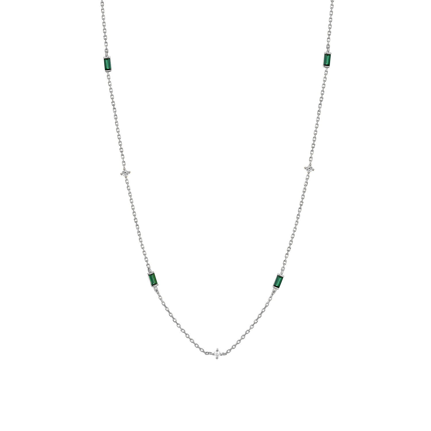 925 Silver Emerald & Crystal Accent Necklace-MMN303