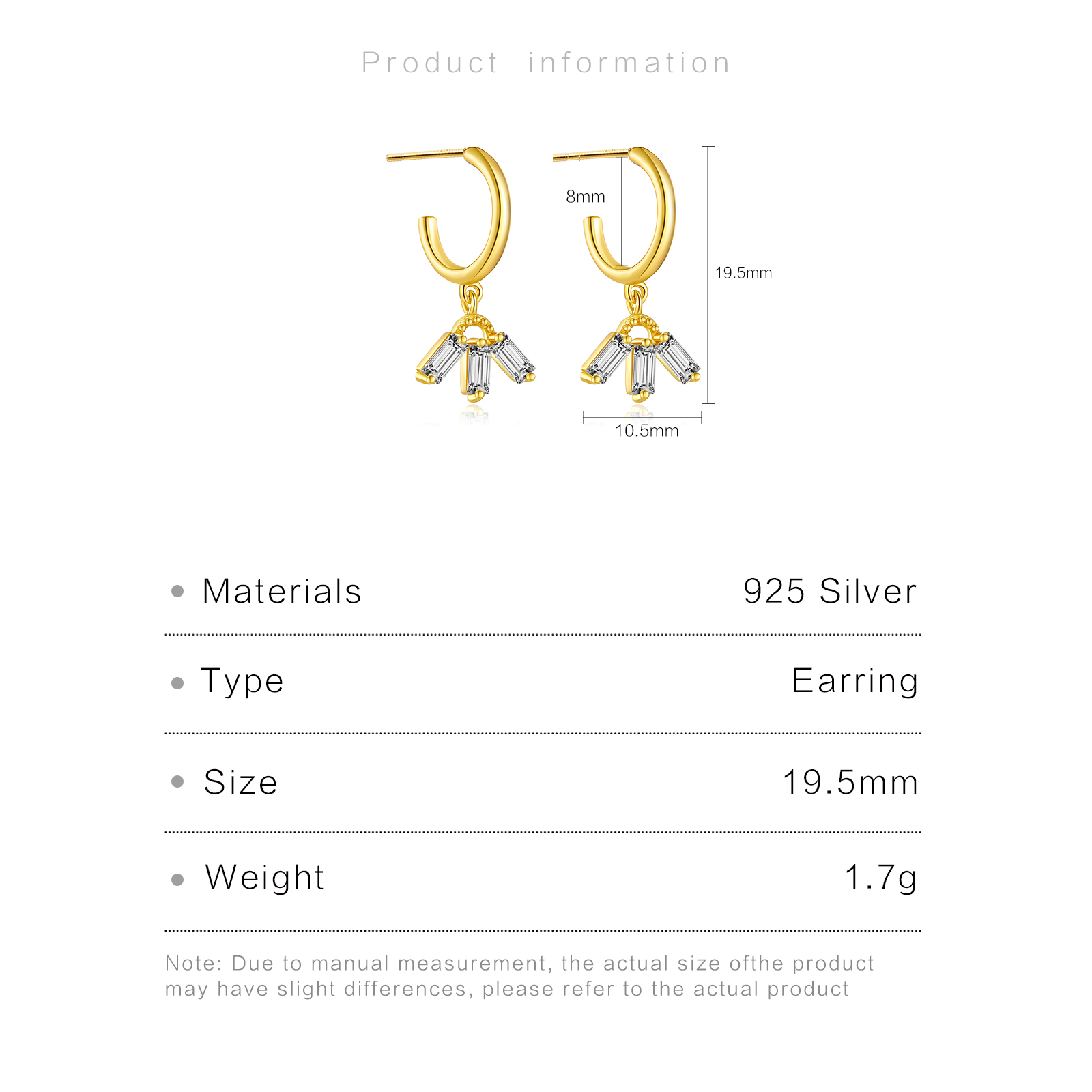 | Color | Plated Rhodium & 18K Golden Color |