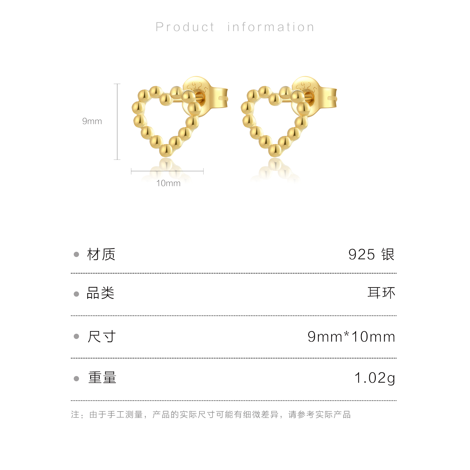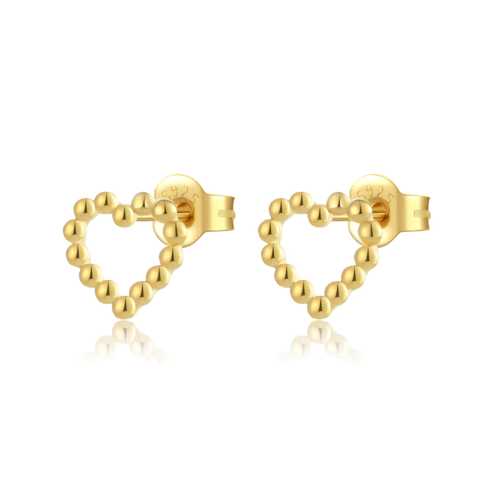925 Silver Gold Beaded Heart Stud Earrings -MME856