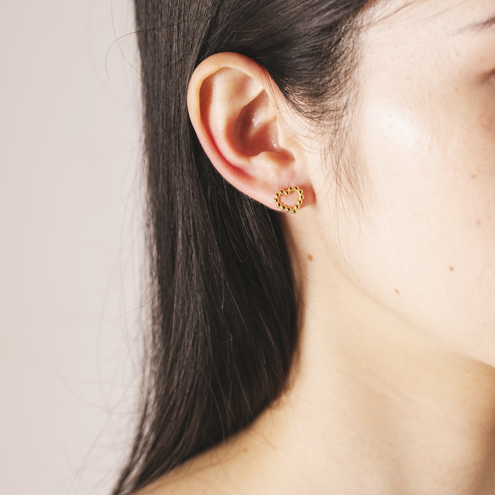 Be the first to review “925 Silver Gold Beaded Heart Stud Earrings -MME856”