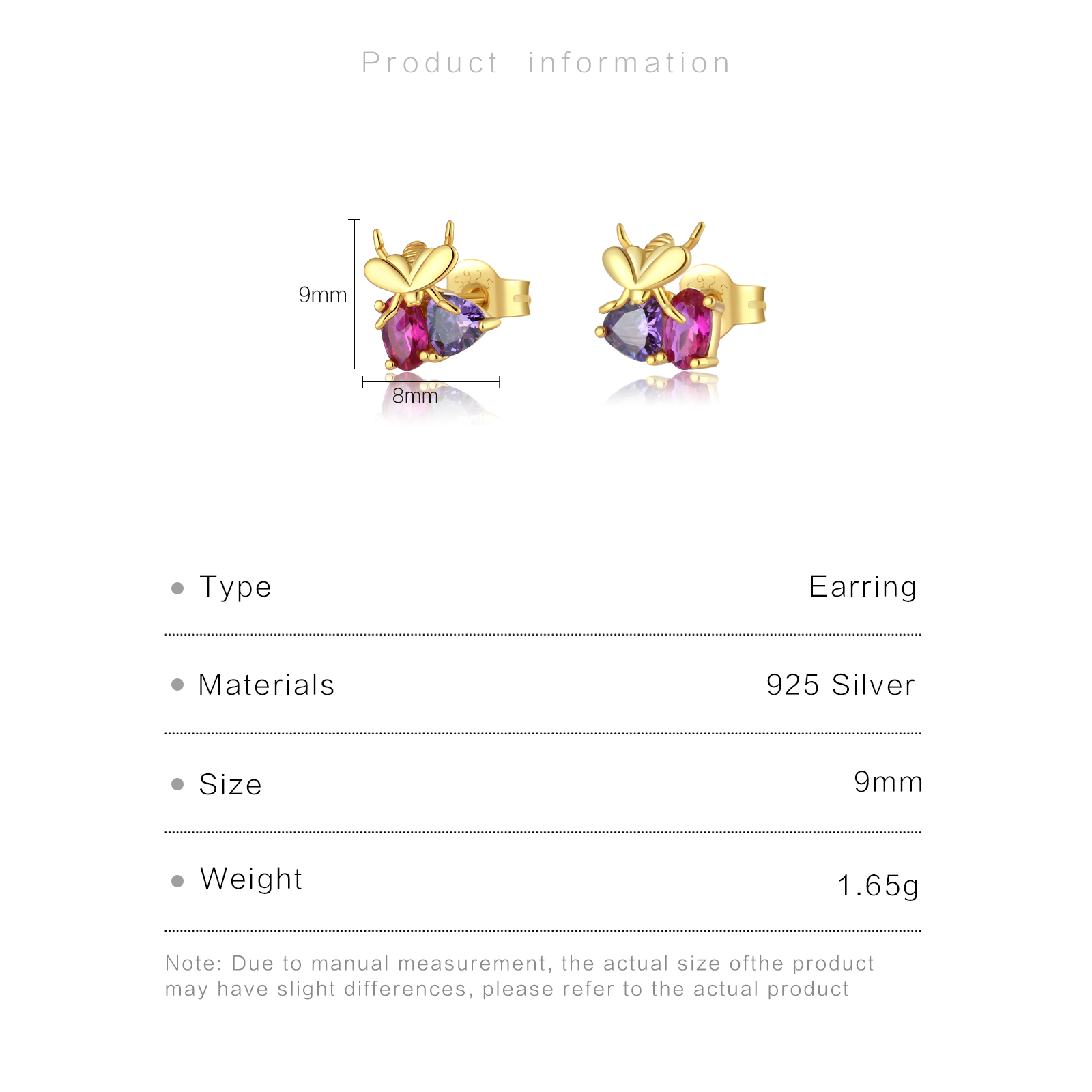 | Color | Plated Rhodium & 18K Golden Color |
