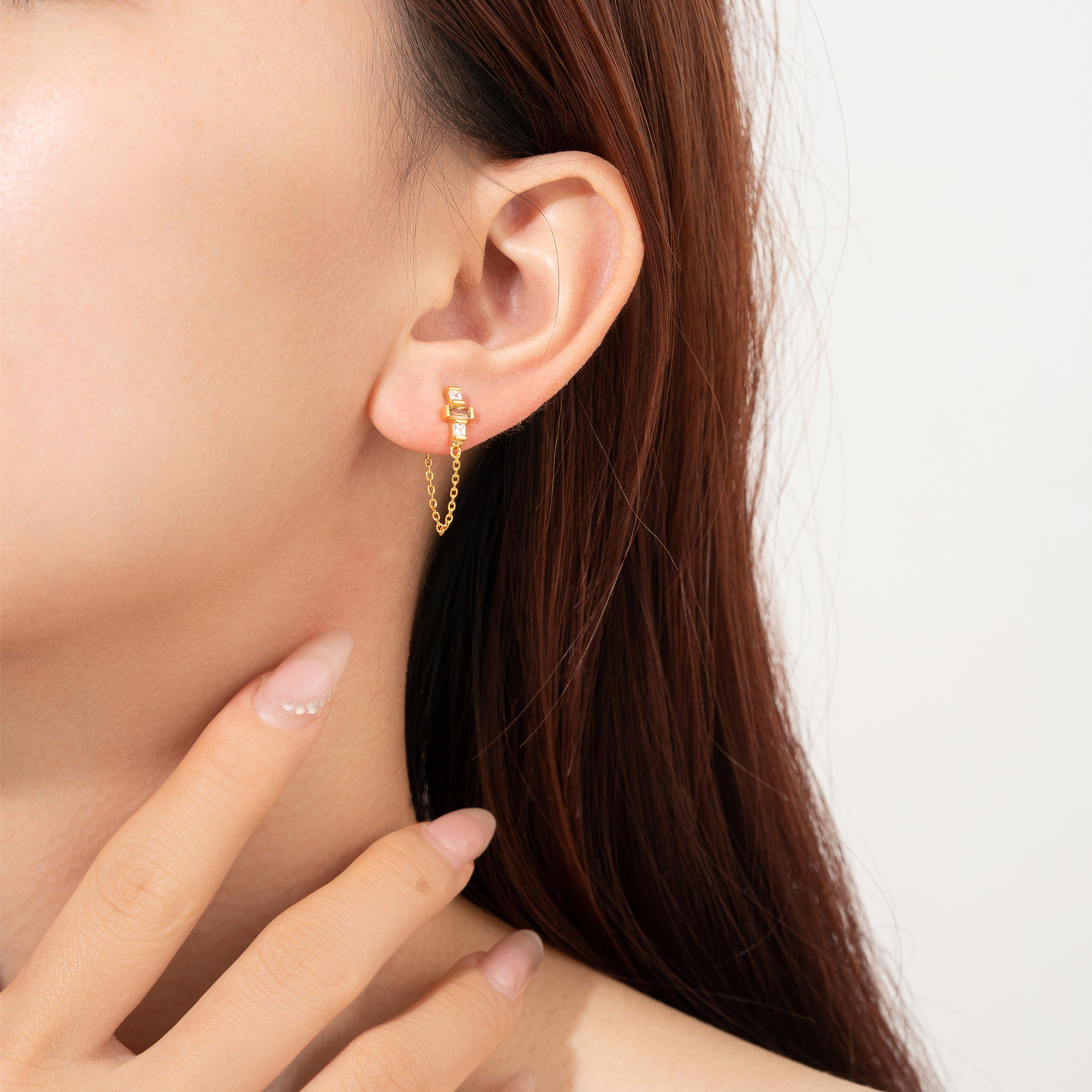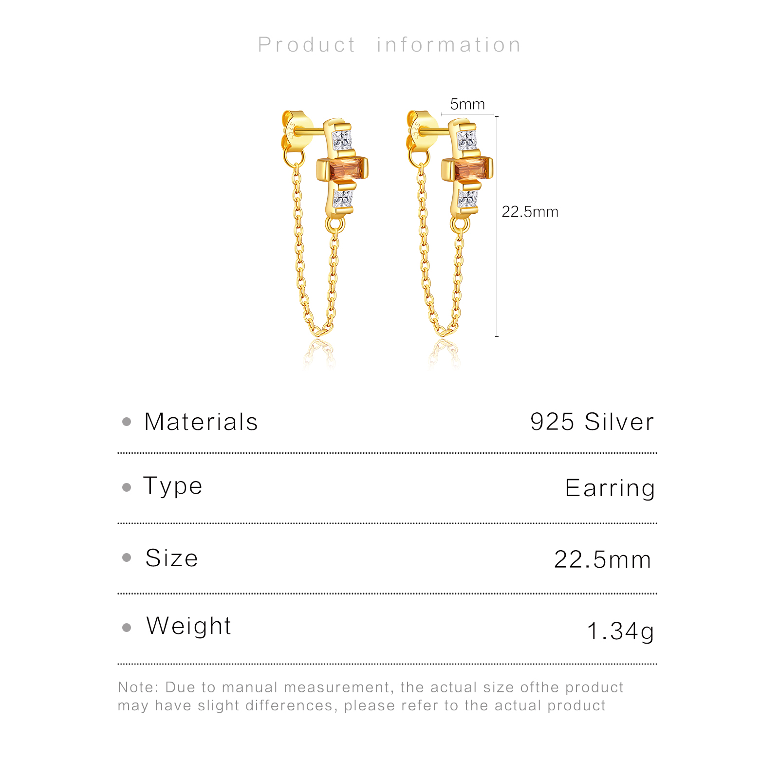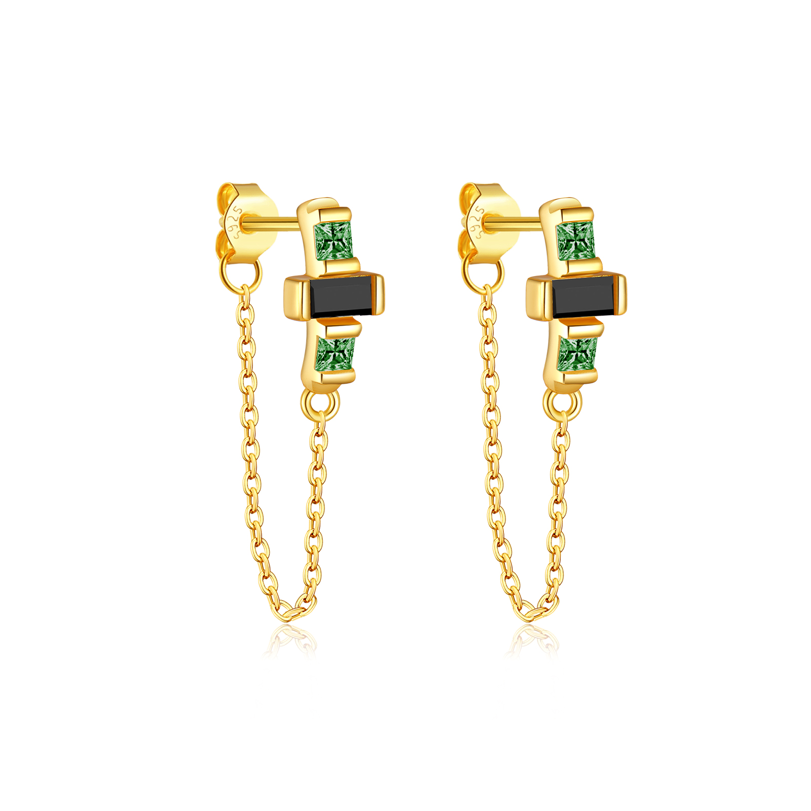 Be the first to review “925 Silver Gold Bezel-Set Chain CZ Charm Drop Earrings (Multi-CZ)-MME467”