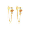 925 Silver Gold Bezel-Set Chain CZ Charm Drop Earrings (Multi-CZ)-MME467