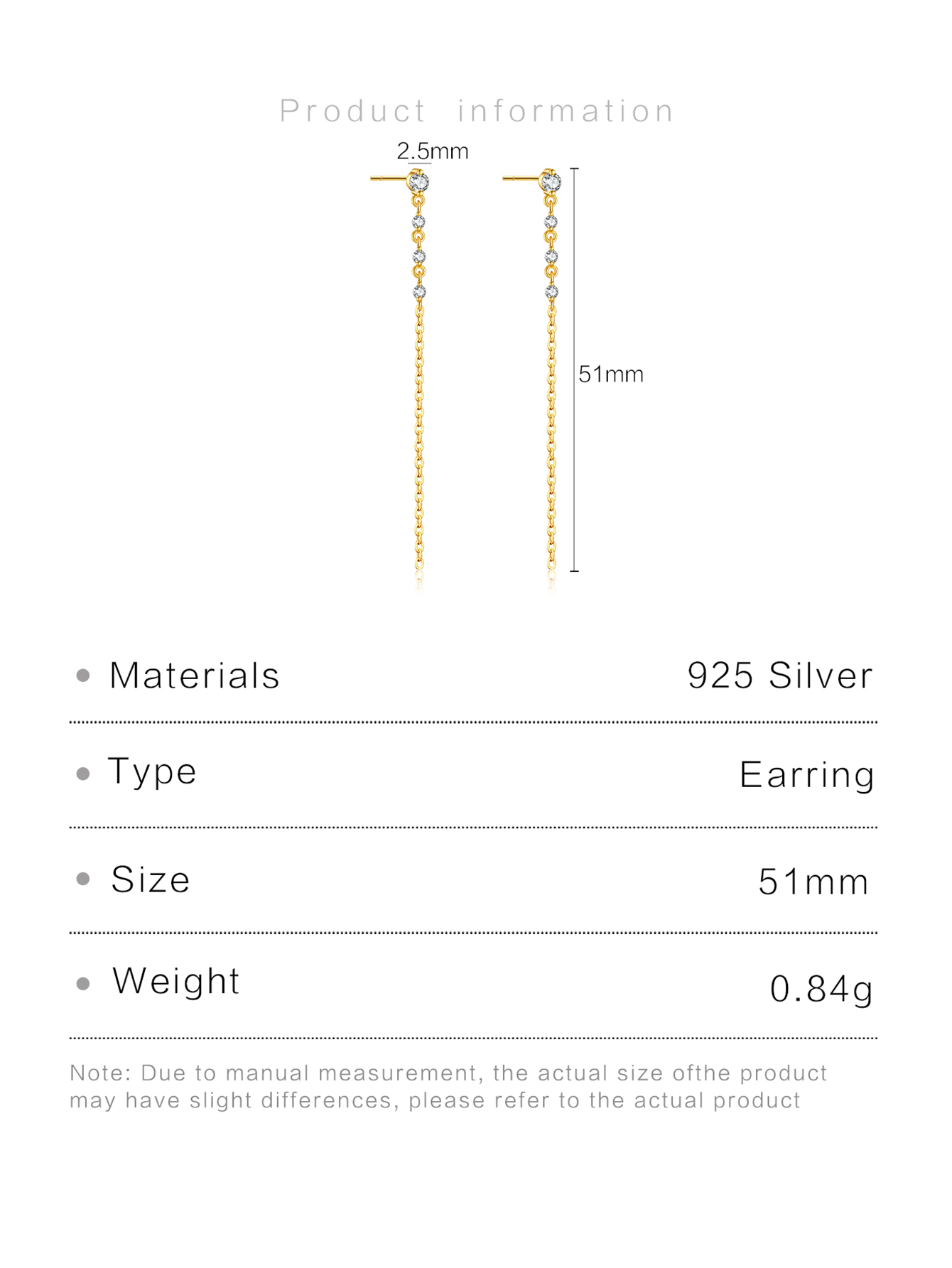 | Color | Plated Rhodium & 18K Golden Color |