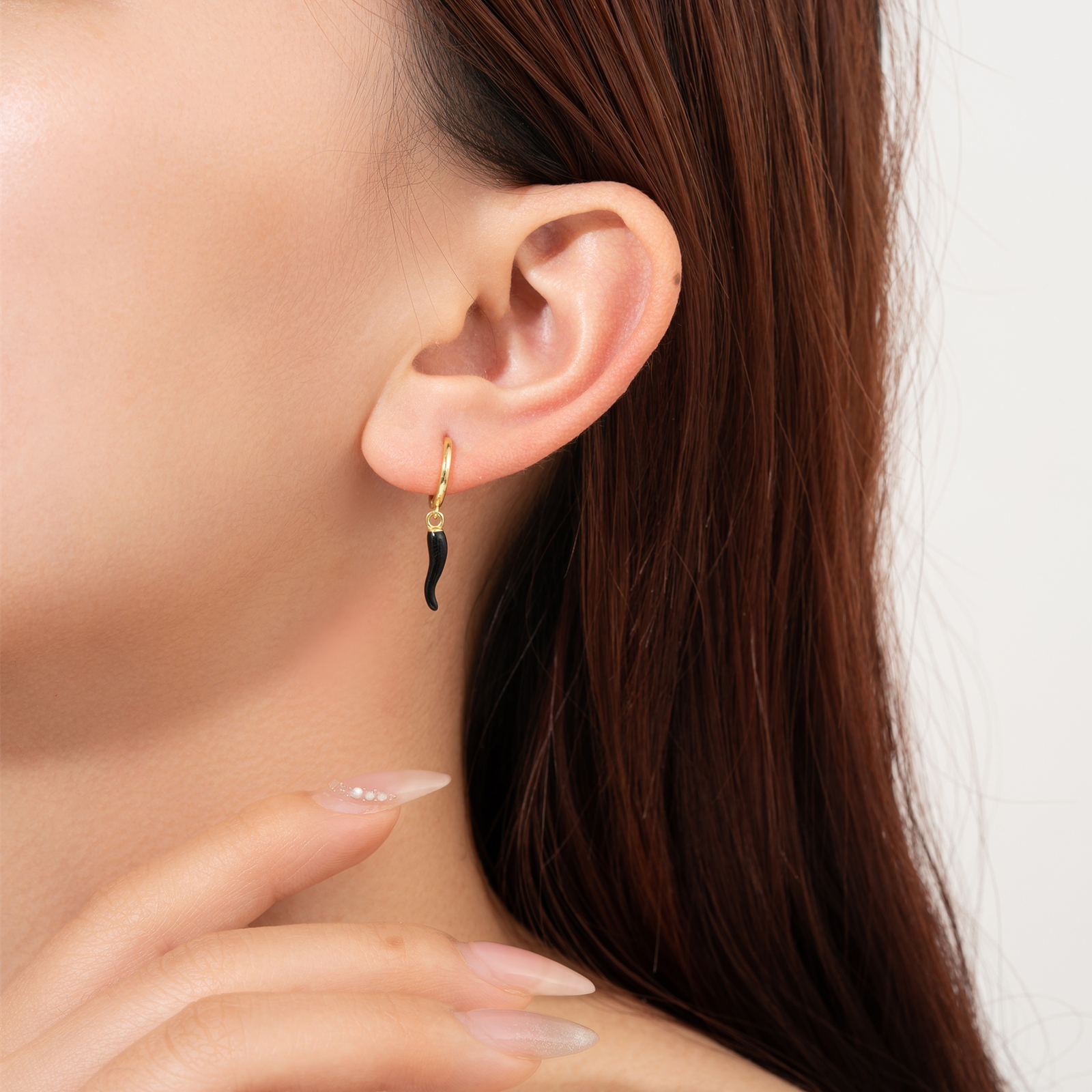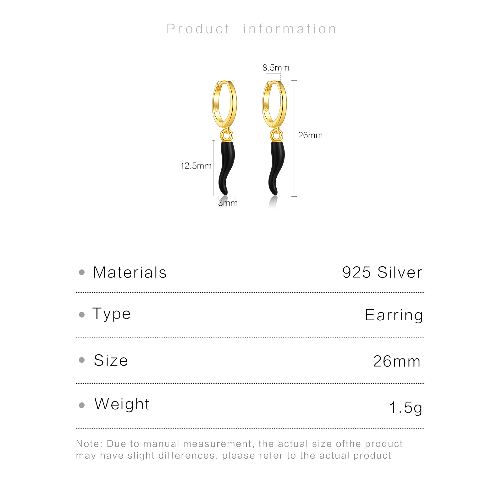 Be the first to review “925 Silver Gold Black Drop Glue Curved Pendant Huggies-MME464”