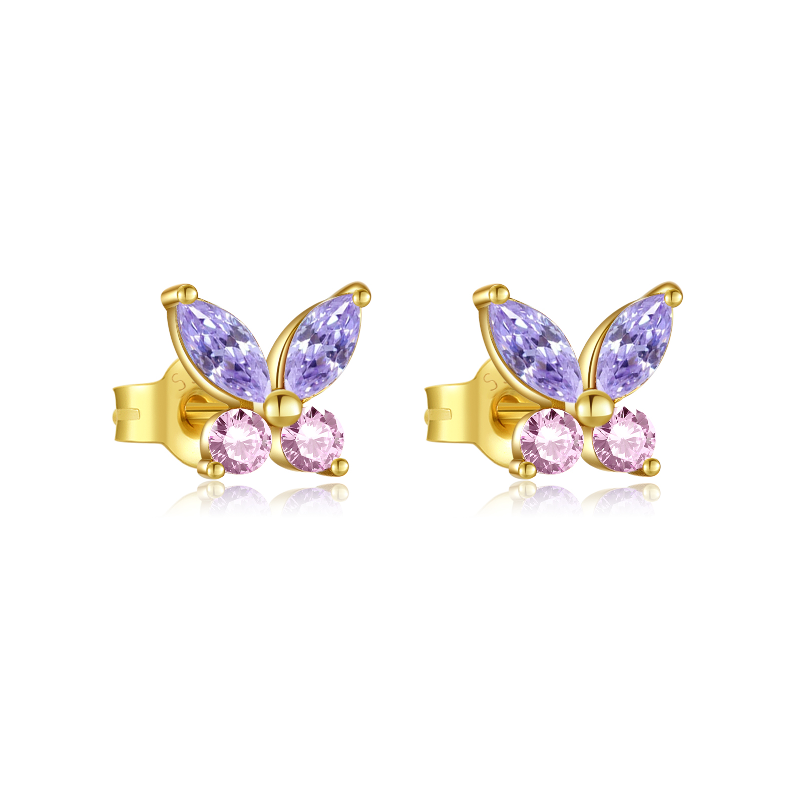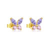 925 Silver Gold Butterfly Shaped Stone Stud Earrings-MME341