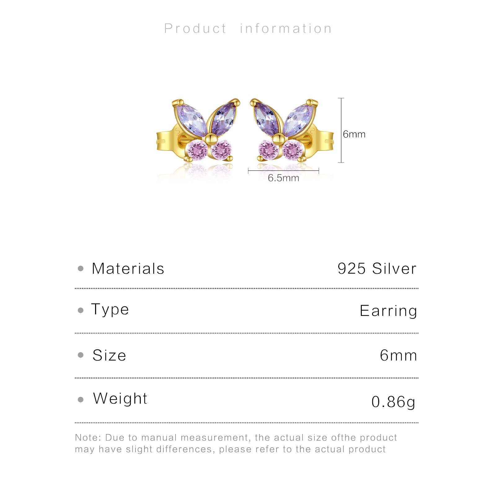 Be the first to review “925 Silver Gold Butterfly Shaped Stone Stud Earrings-MME341”