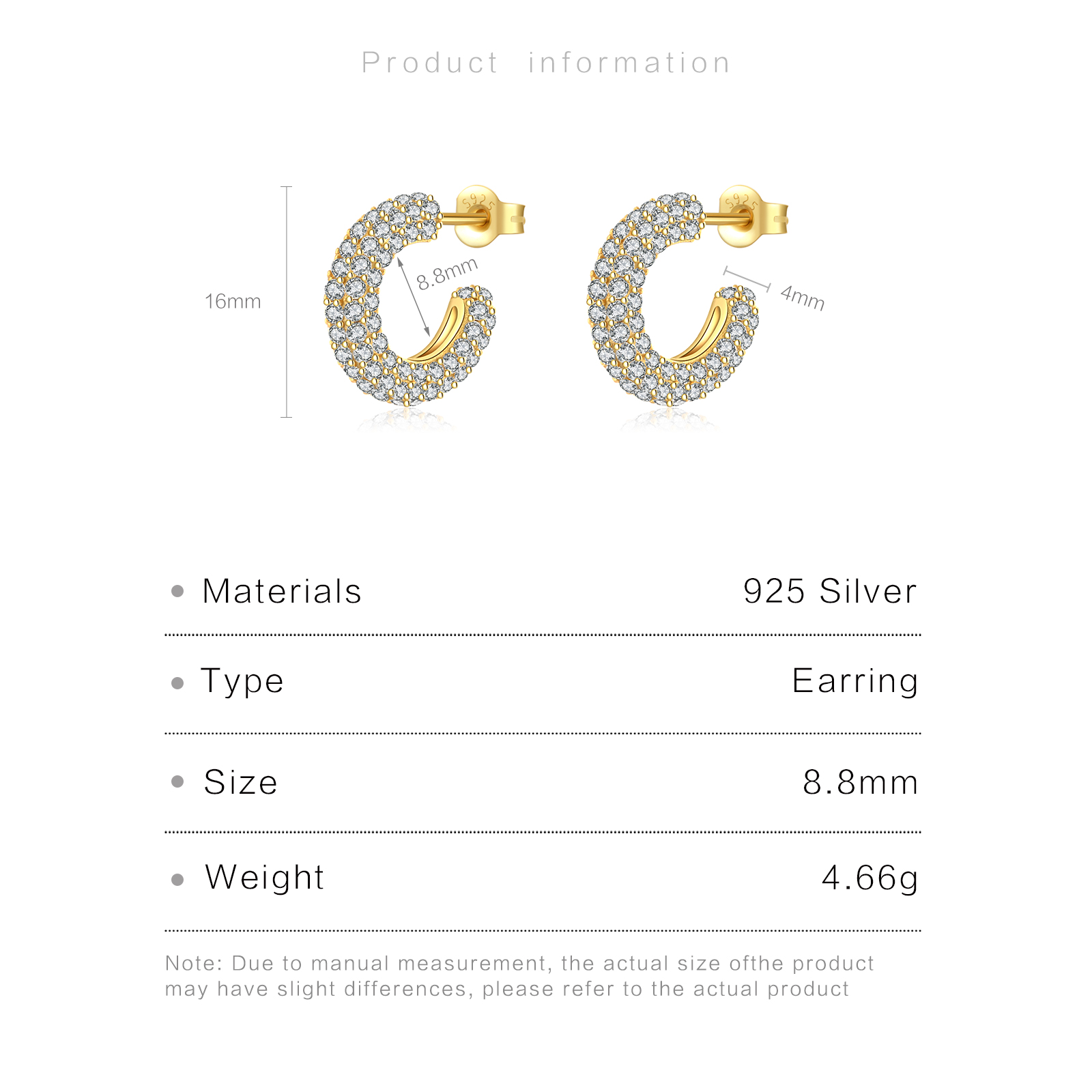 | Color | Plated Rhodium & 18K Golden Color |