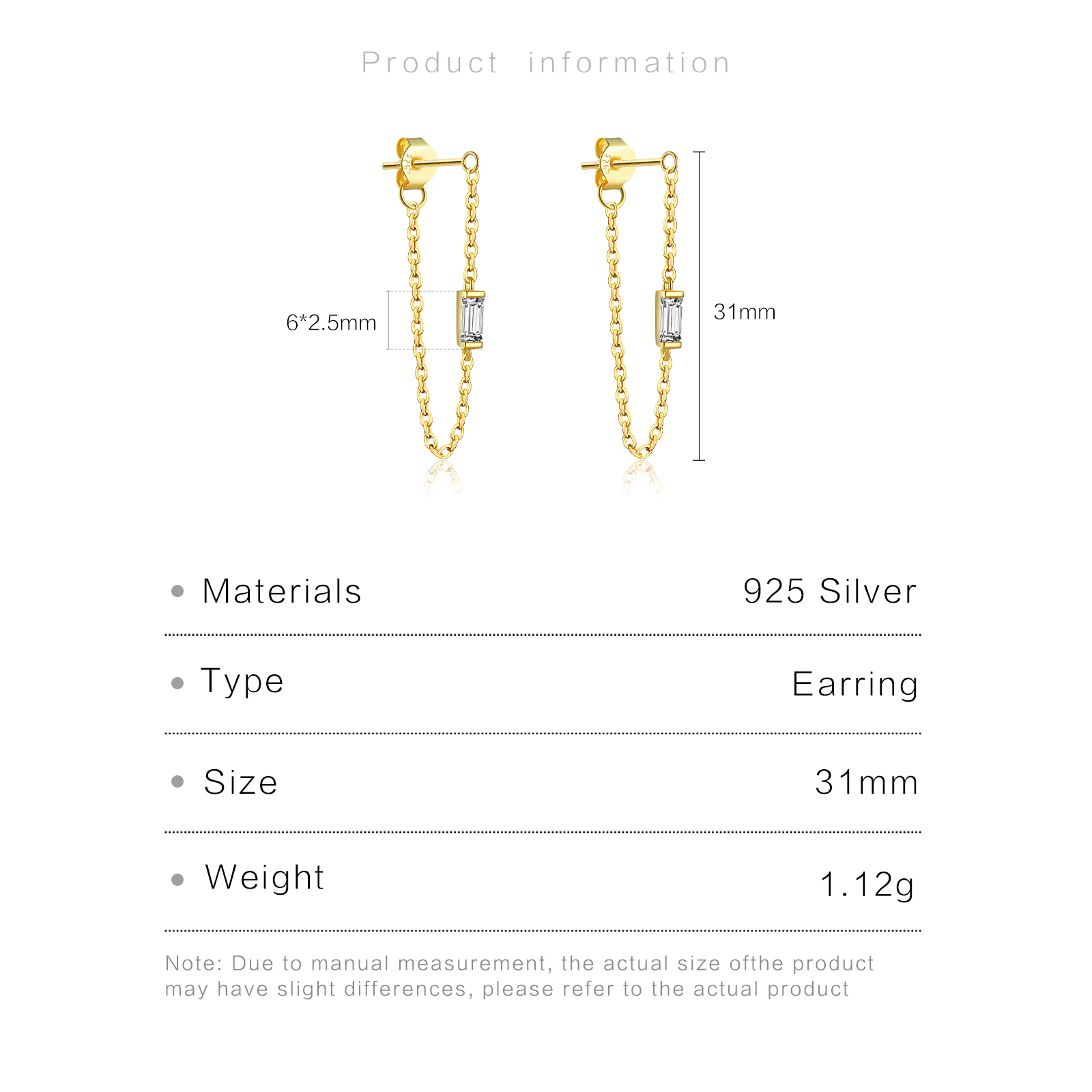 | Size | 31mm Height 6mm*2.5mm CZ Size |