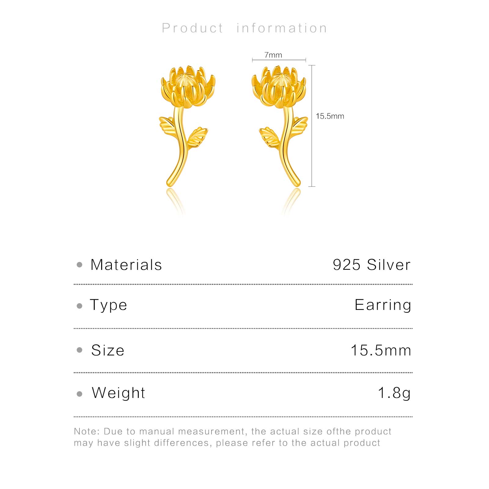 | Color | Plated Rhodium & 18K Golden Color |