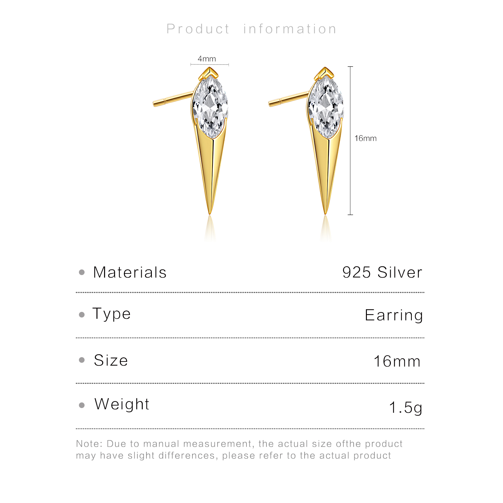 | Color | Plated Rhodium & 18K Golden Color |
