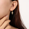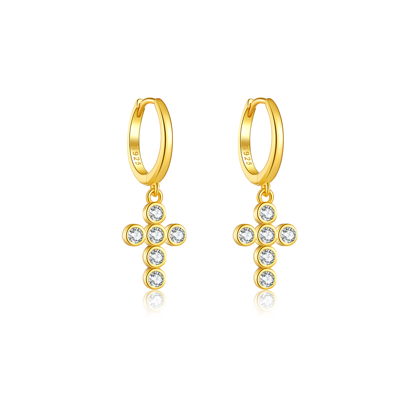 Be the first to review “925 Silver Gold Cross Bezel-Set CZ Drop Huggie Earrings-MME229”