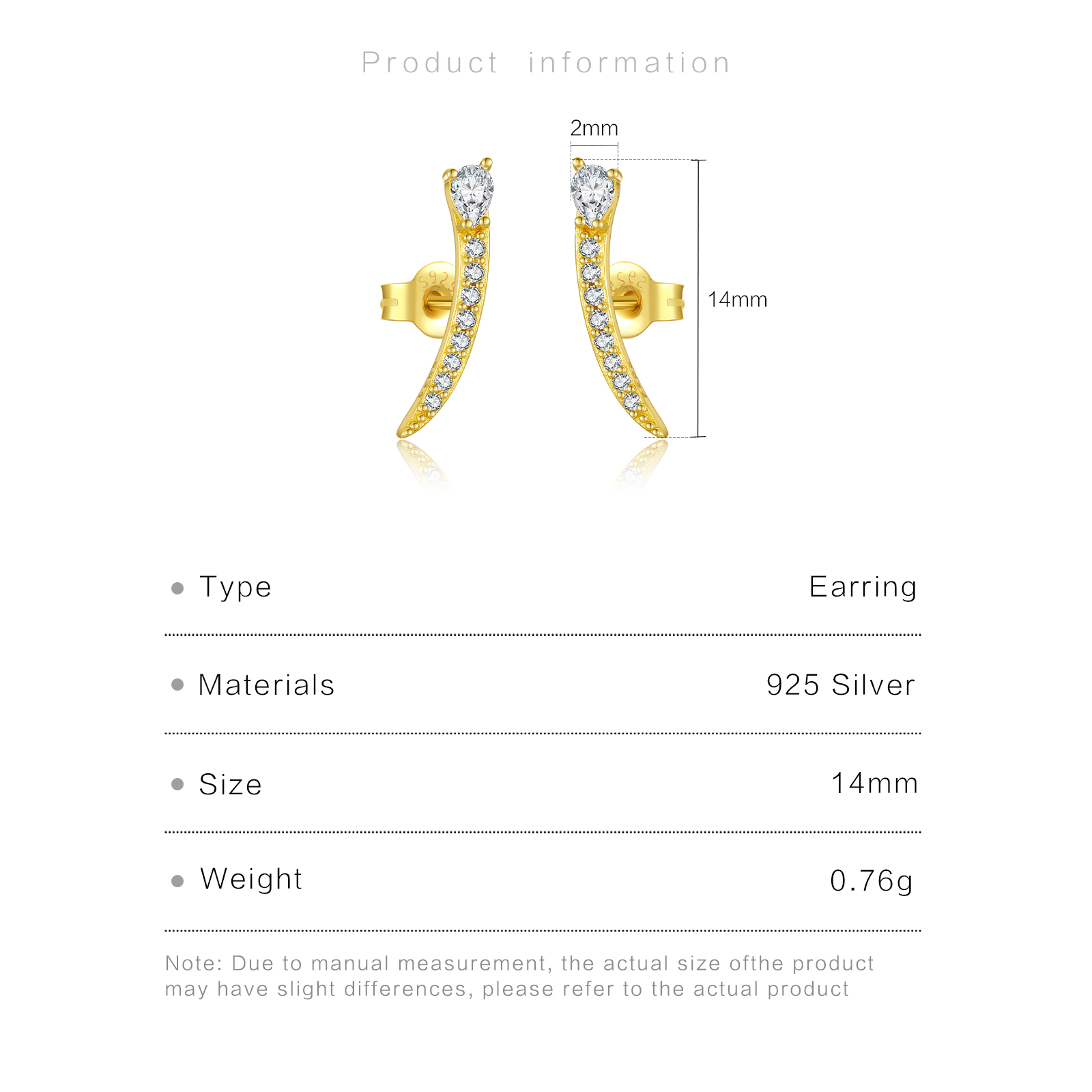 | Color | Plated Rhodium & 18K Golden Color |