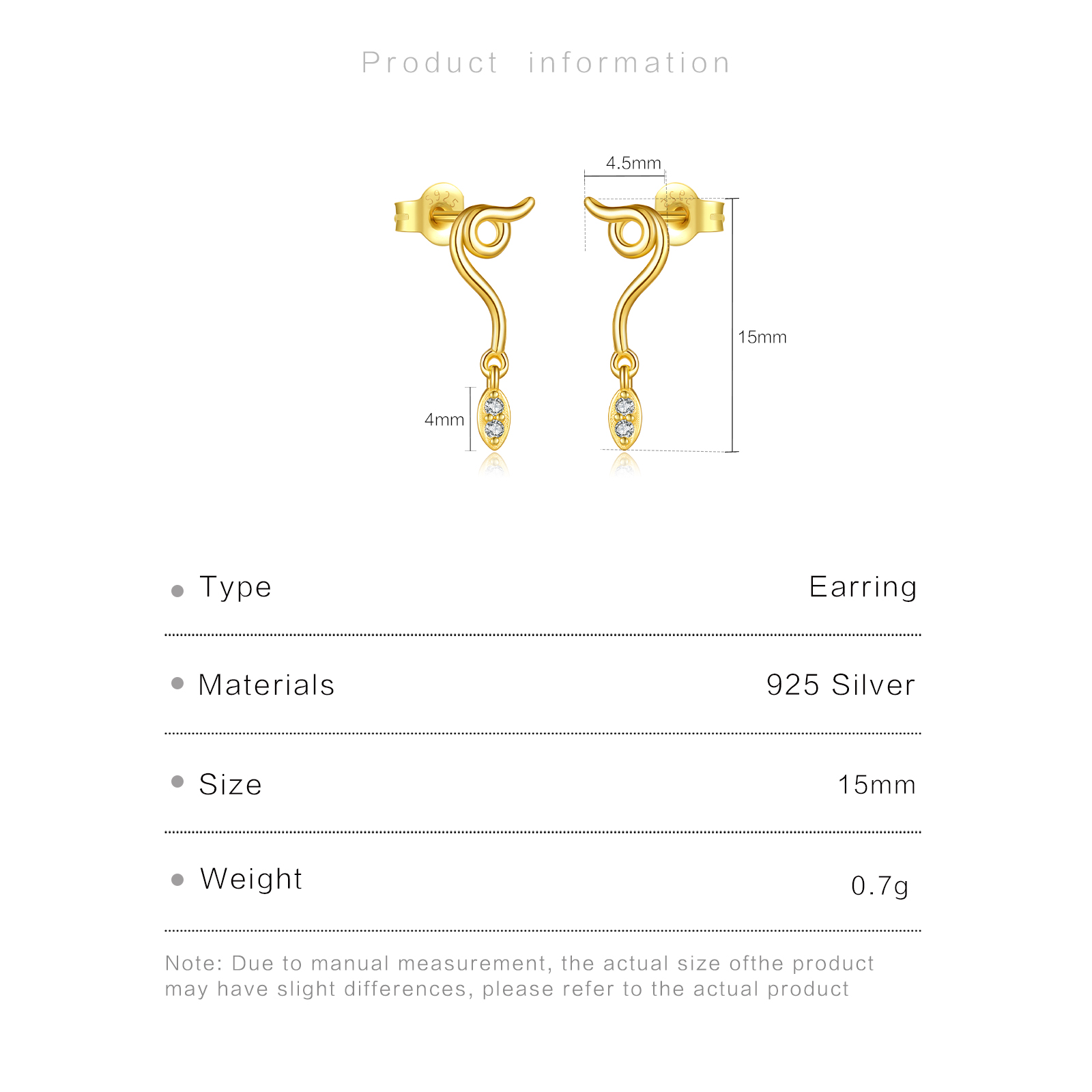 | Color | Plated Rhodium & 18K Golden Color |