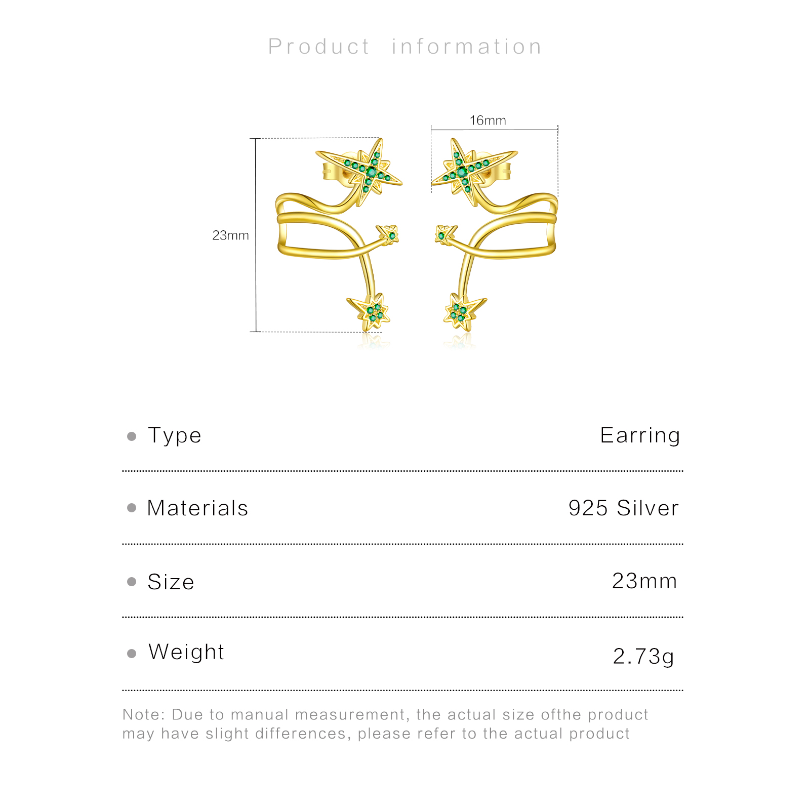 | Color | Plated Rhodium & 18K Golden Color |