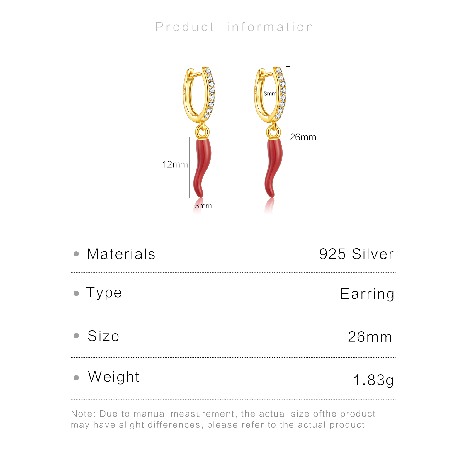 | Size | 26mm Height, 8mm Inner Diameter, 12mm*3mm Dangling |