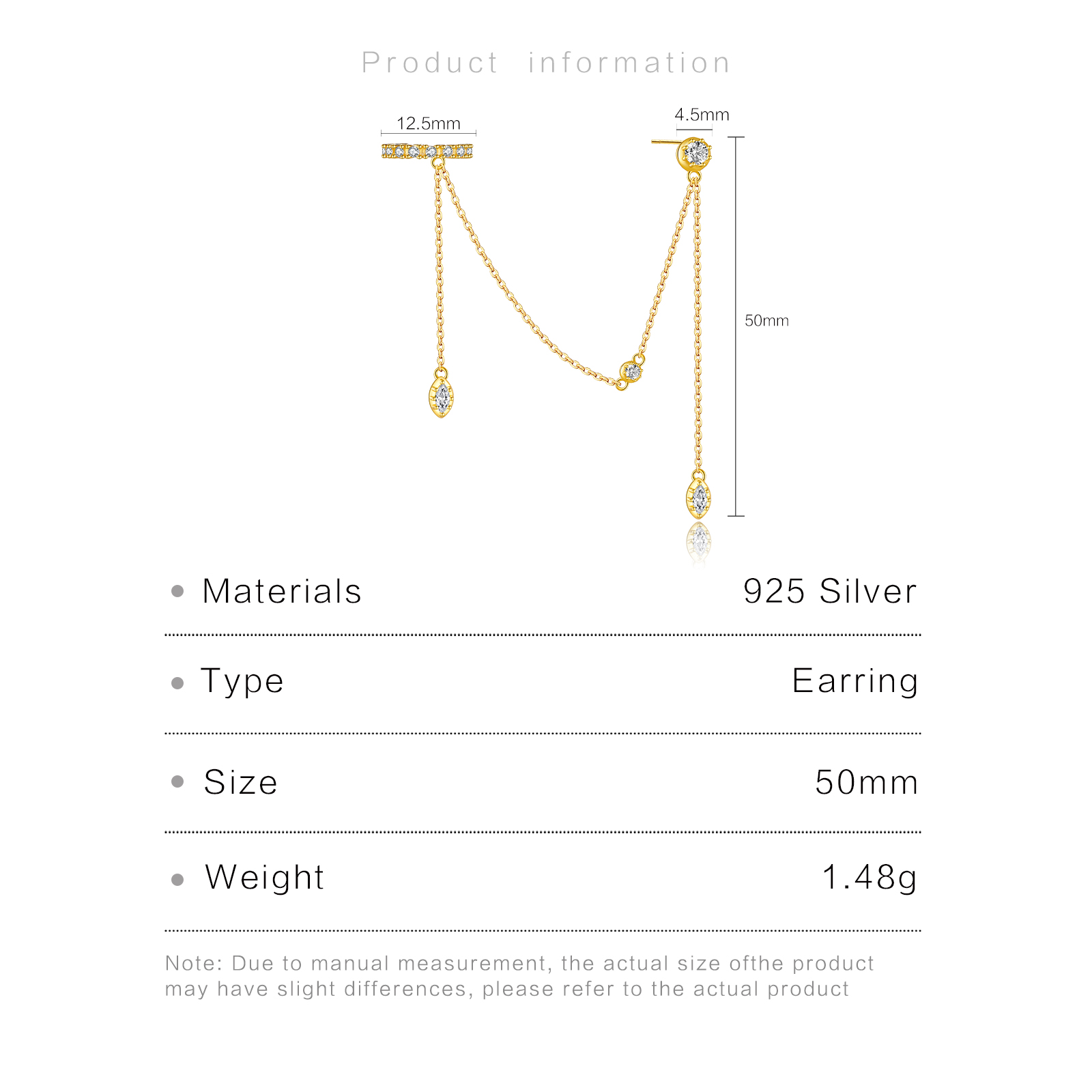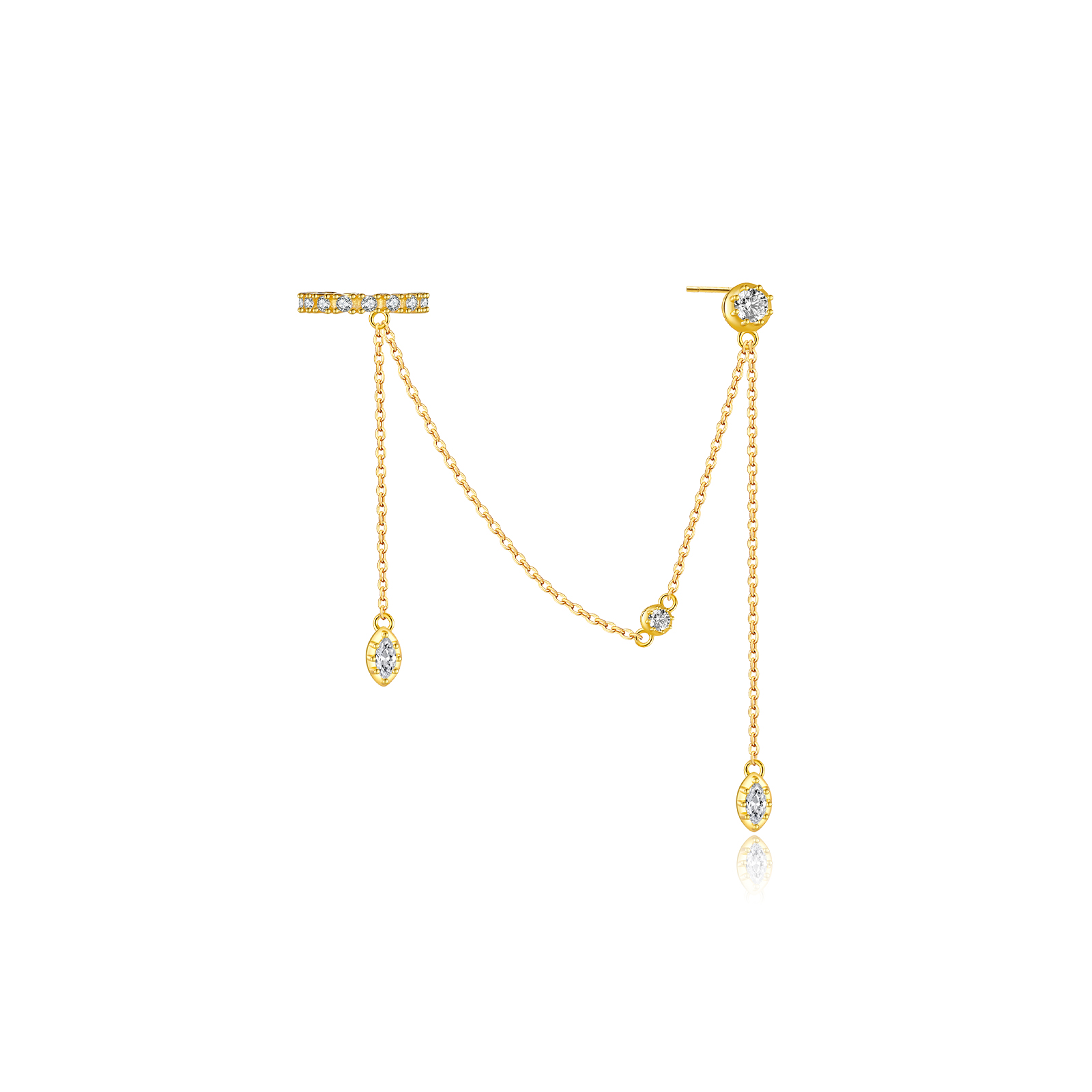 925 Silver Gold-Plated CZ Ear Cuff with Chain & Marquise Drops-MME919