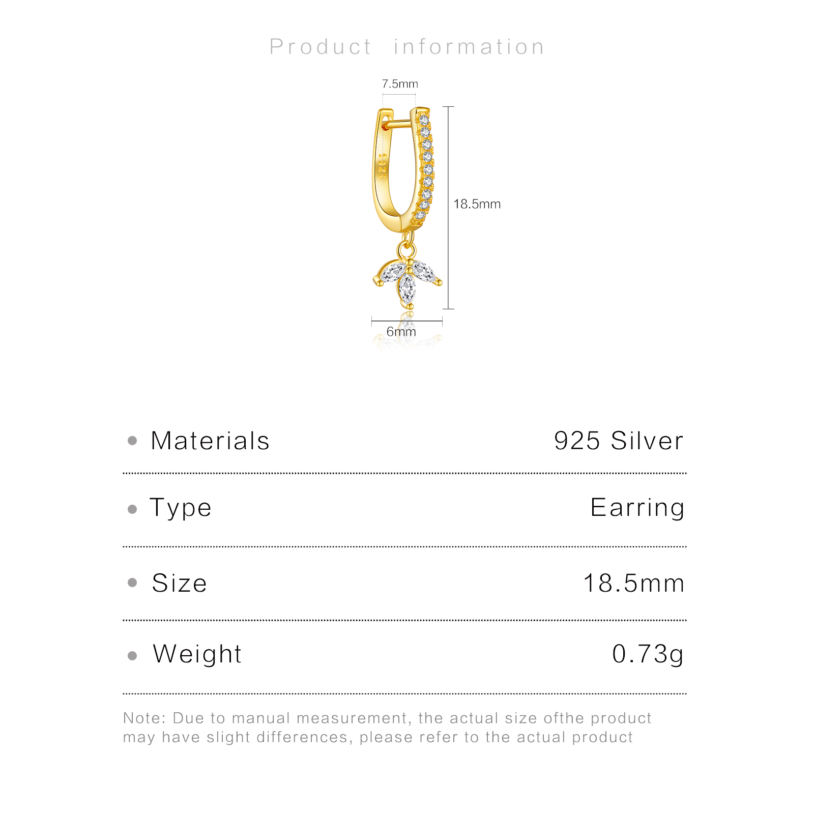 | Size | 18.5mm Height 7.5mm Inner Diameter 6mm CZ Size |