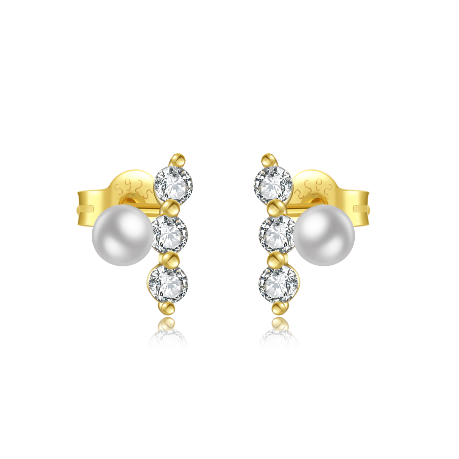 925 Silver Gold CZ & Pearl Minimalist Versatile Studs-MME517