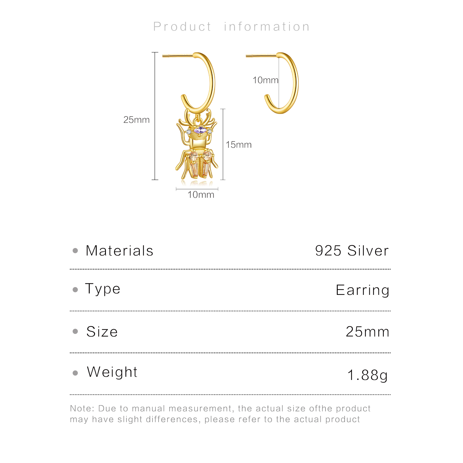 Be the first to review “925 Silver Gold Double-Crystal Beetle Charm Ear Hooks-MME552”