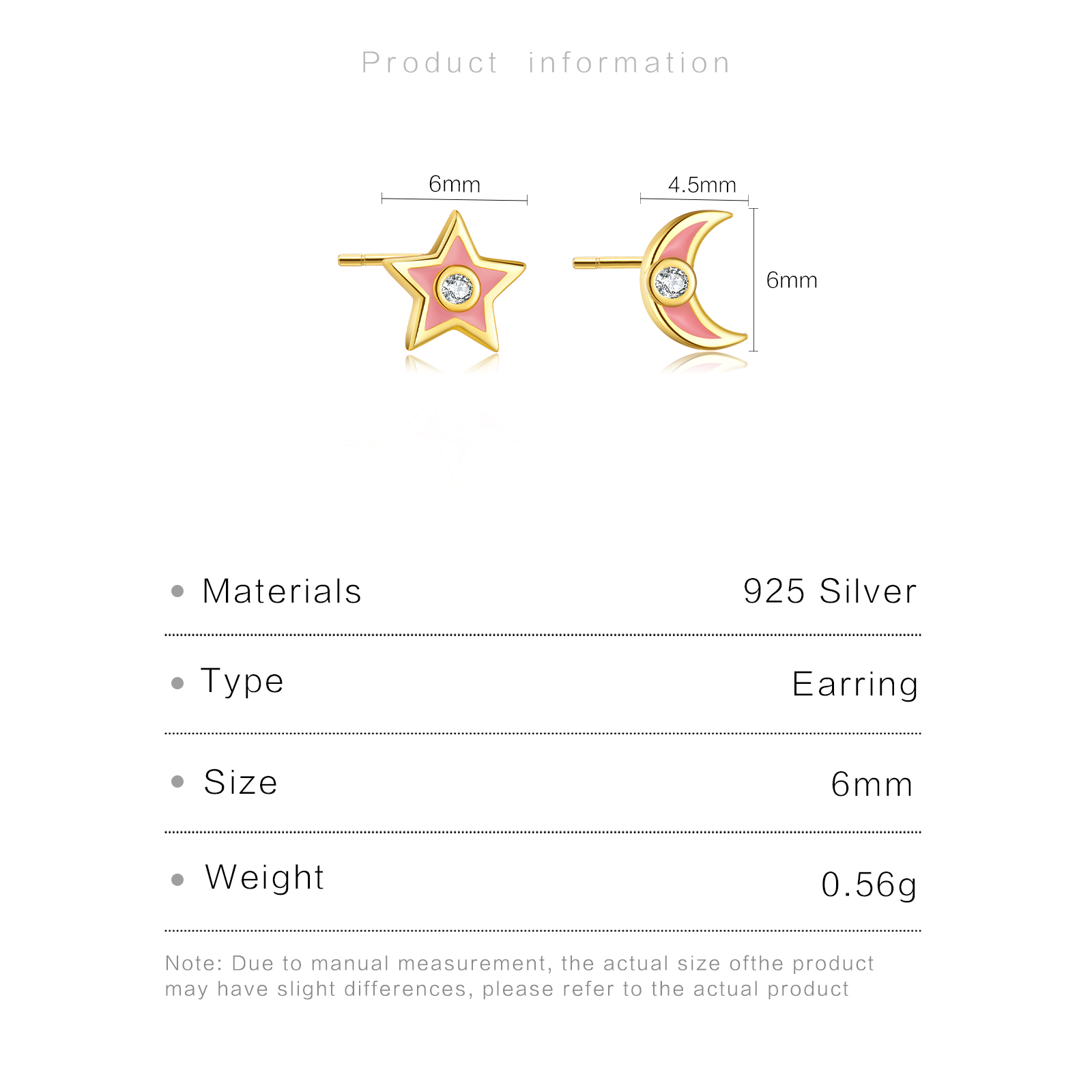 | Size | Star Size 6mm, Moon Size 4.5mm x 6mm |