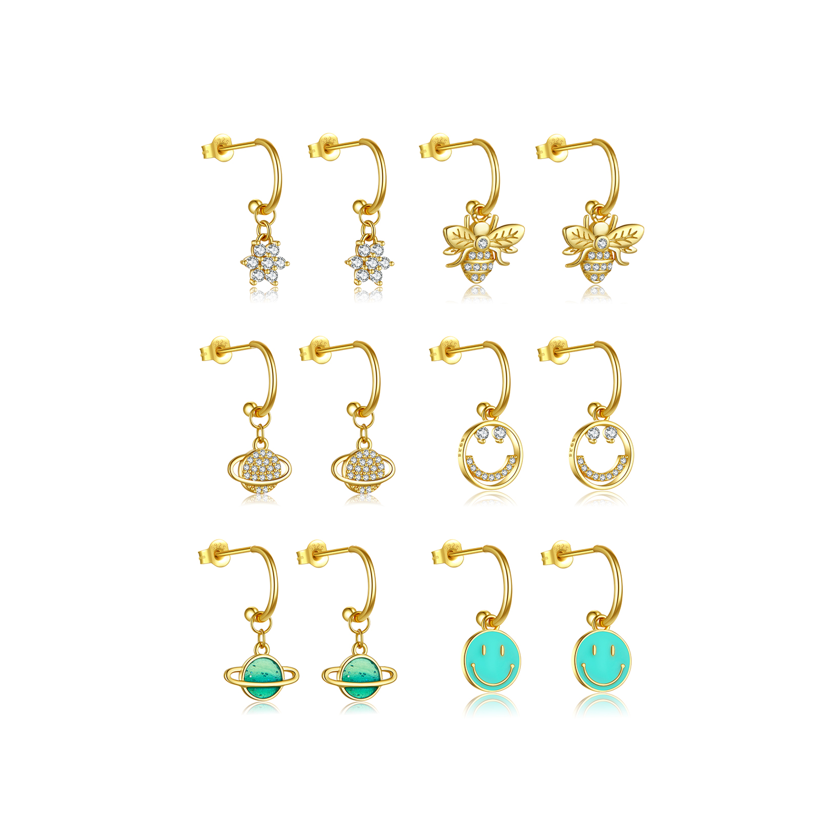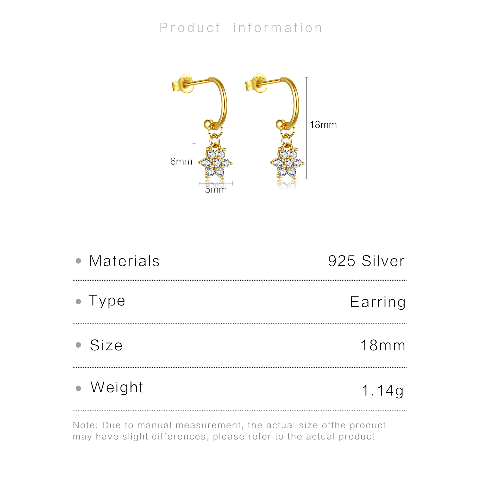 925 Silver Gold Flower Cluster Drop Hook Studs-MME491
