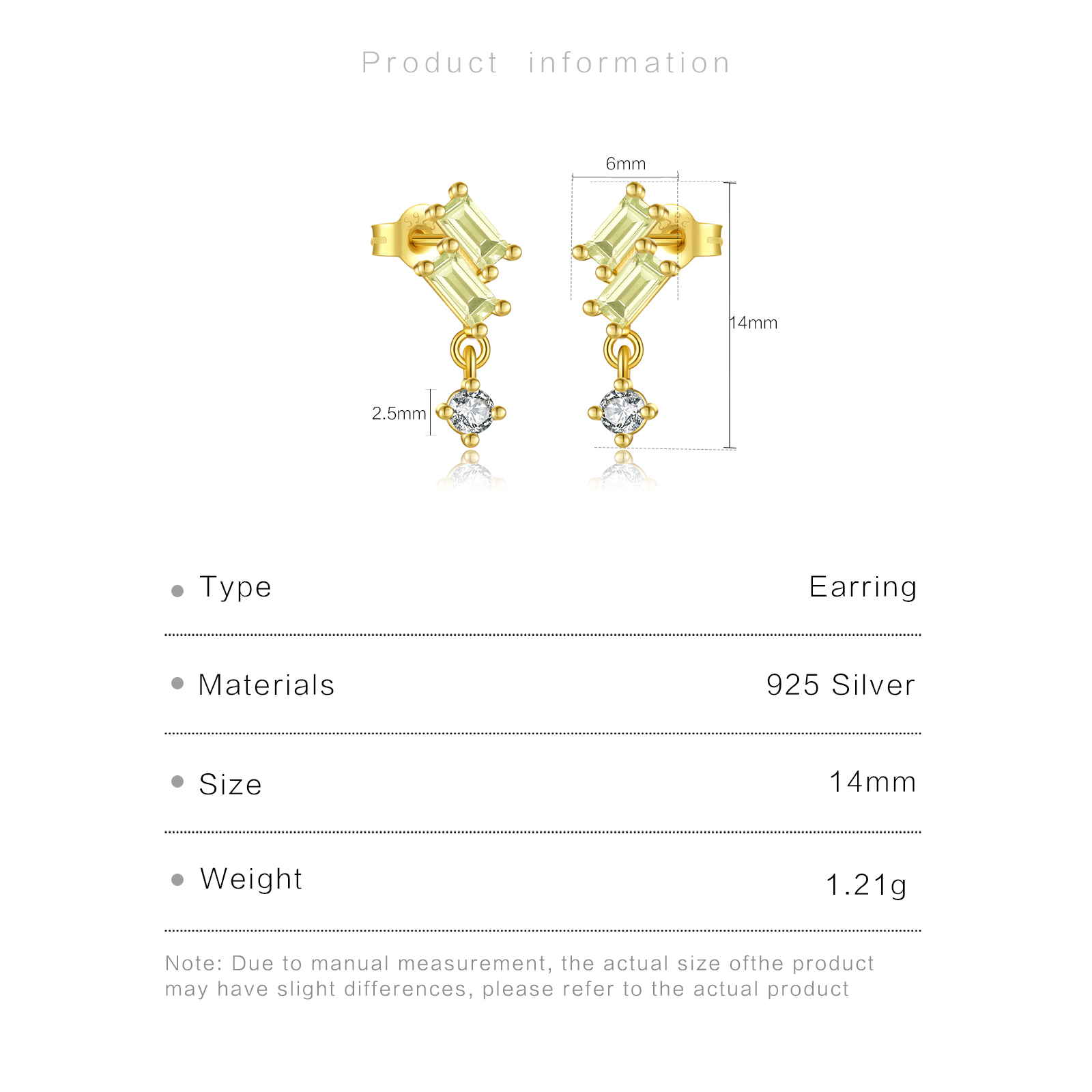 | Size | 14mm Height 6mm Width 2.5mm CZ Size |