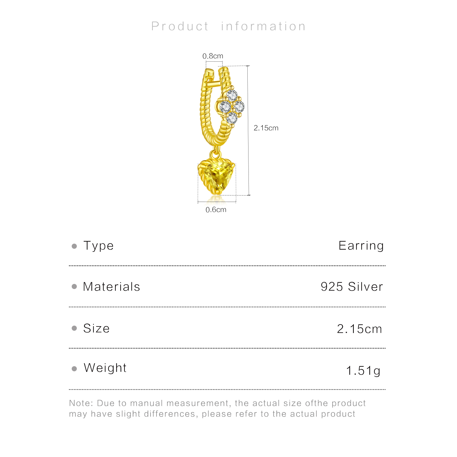 | Size | Inner Diameter 8mm, Height 21.5mm, Flower Width 4.5mm, Drop Size 6mm |