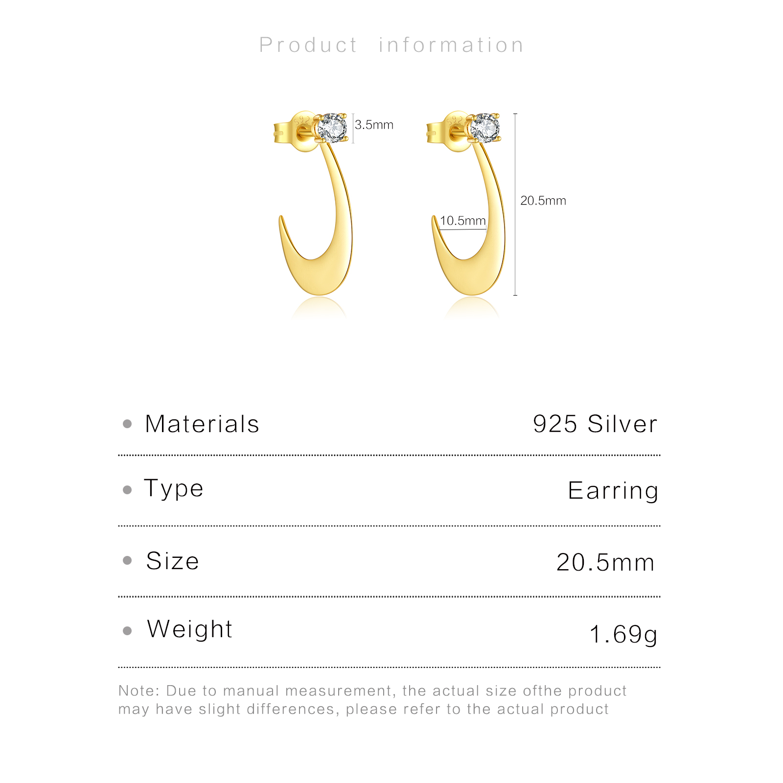 Be the first to review “925 Silver Gold Hook-Shaped Multi-Color CZ Stud Earrings-MME283”