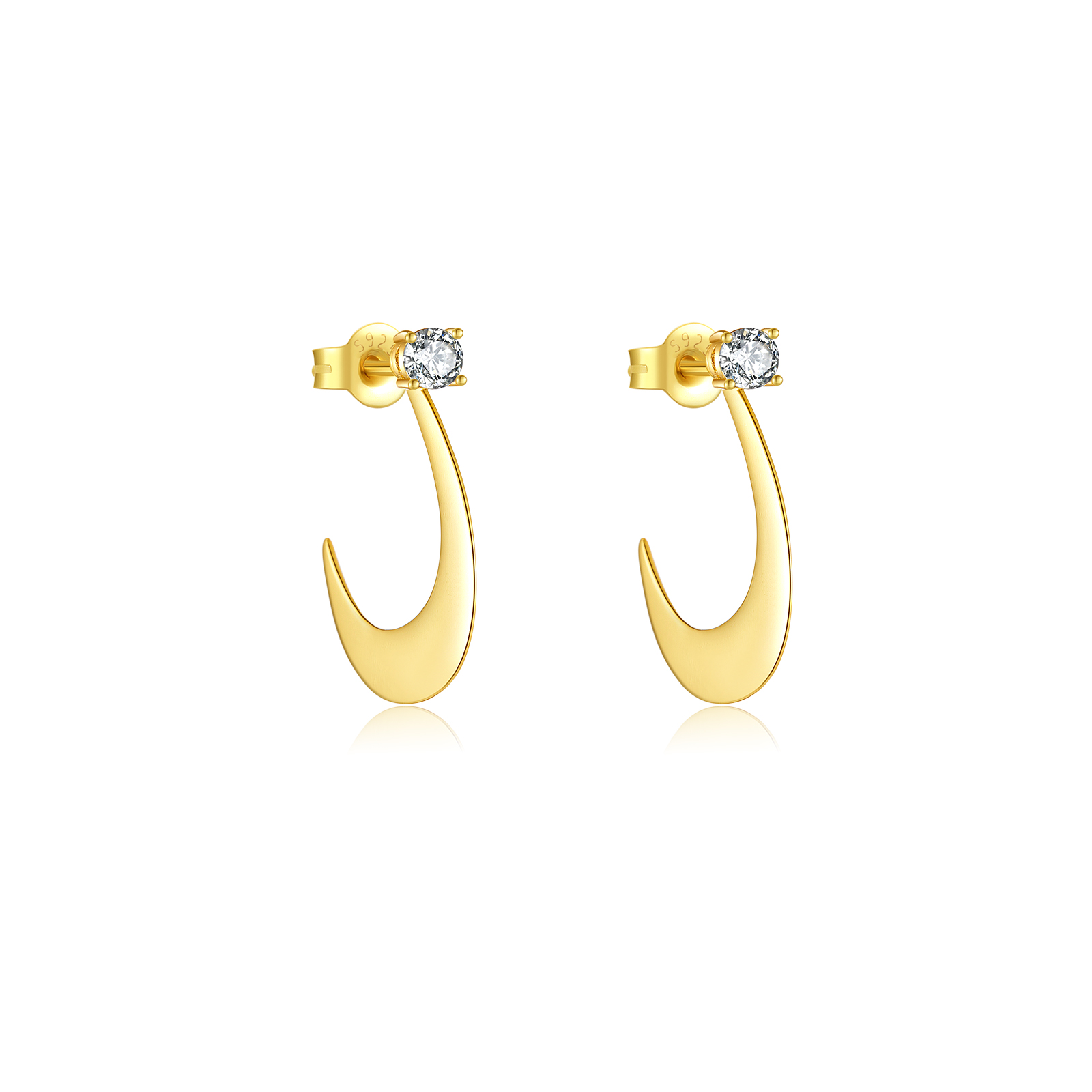 925 Silver Gold Hook-Shaped Multi-Color CZ Stud Earrings-MME283