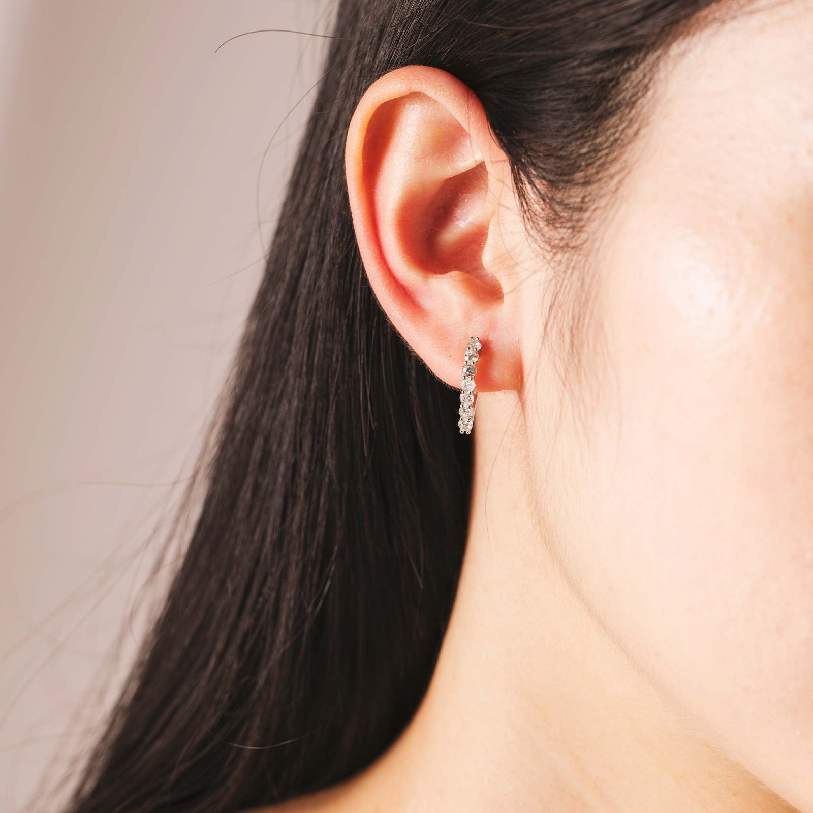 925 Silver Gold Huggie Hoop CZ Line-Set Earrings -MME854