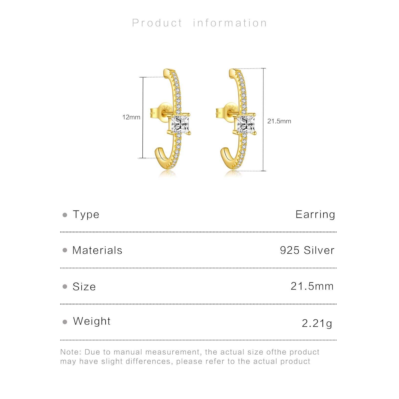 | Size | 21.5mm Height 12mm Inner Diameter 3.5mm CZ Size |