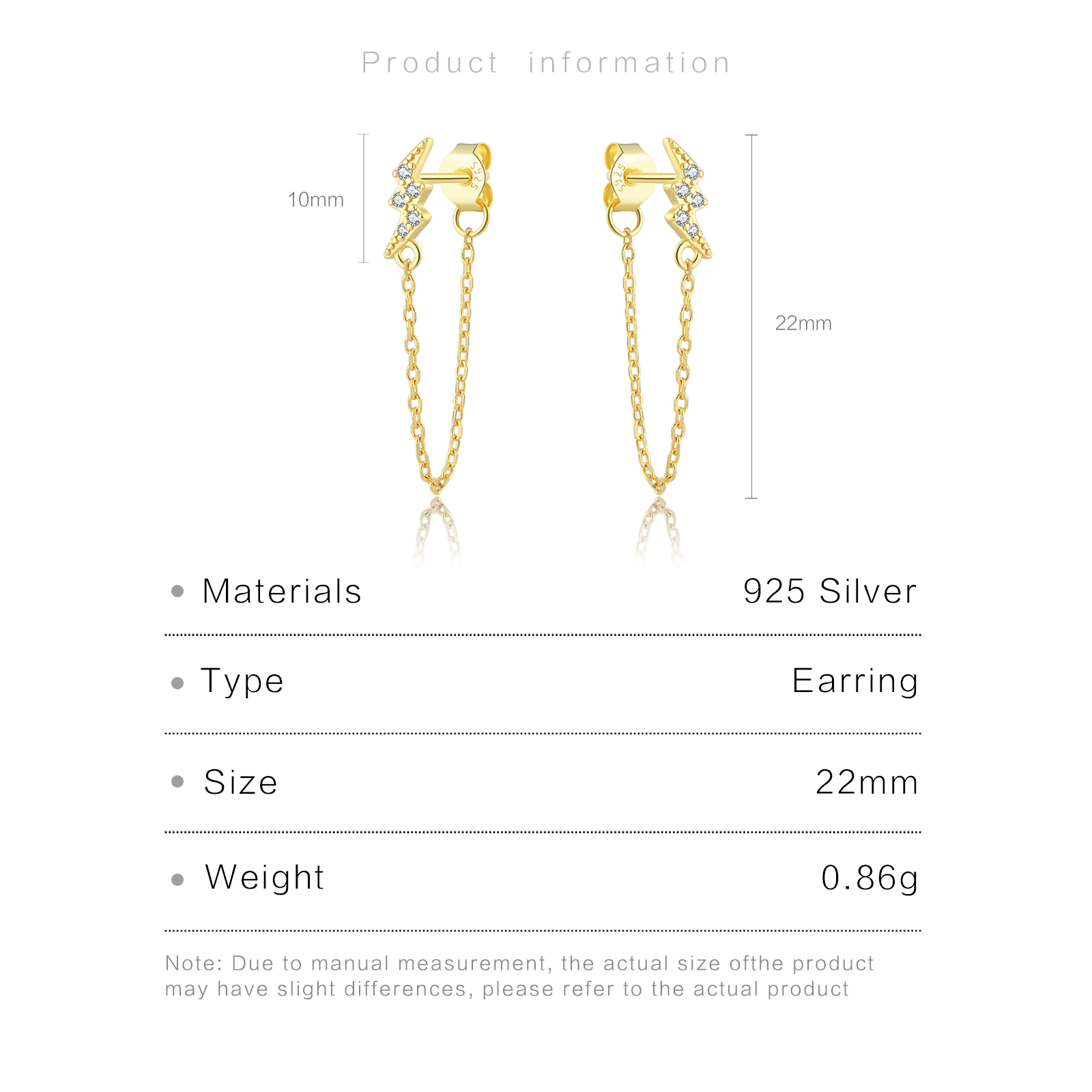 | Color | Plated Rhodium & 18K Golden Color |