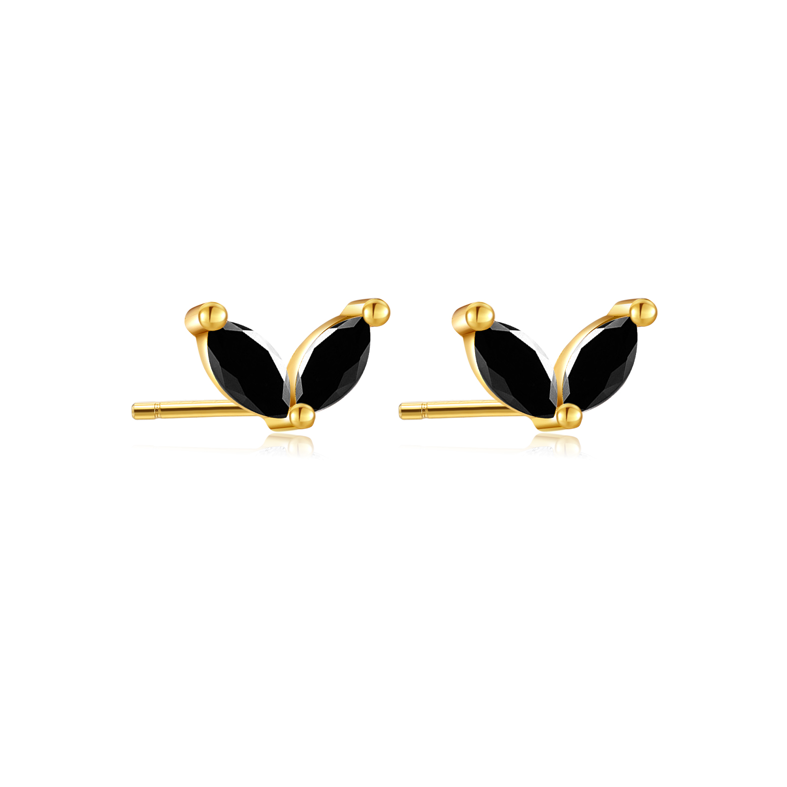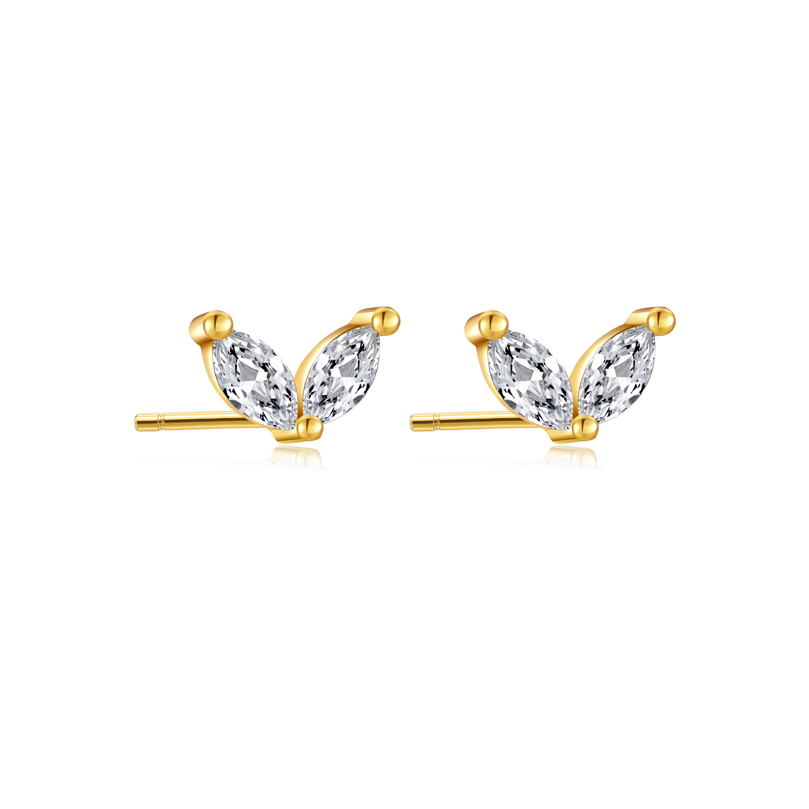925 Silver Gold Marquise Bicolor CZ Stud Earrings-MME226