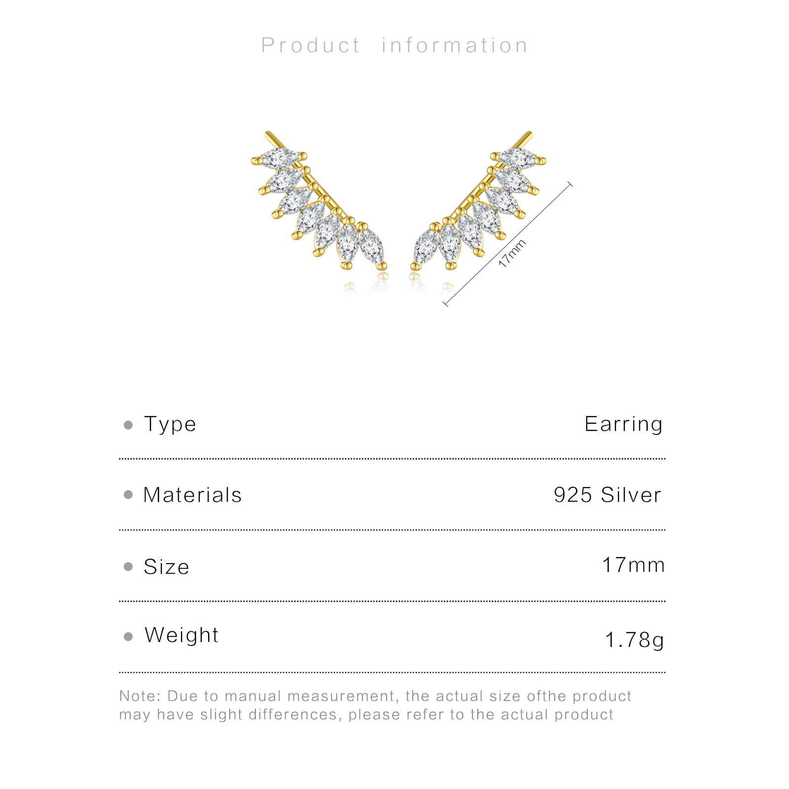 | Color | Plated Rhodium & 18K Golden Color |