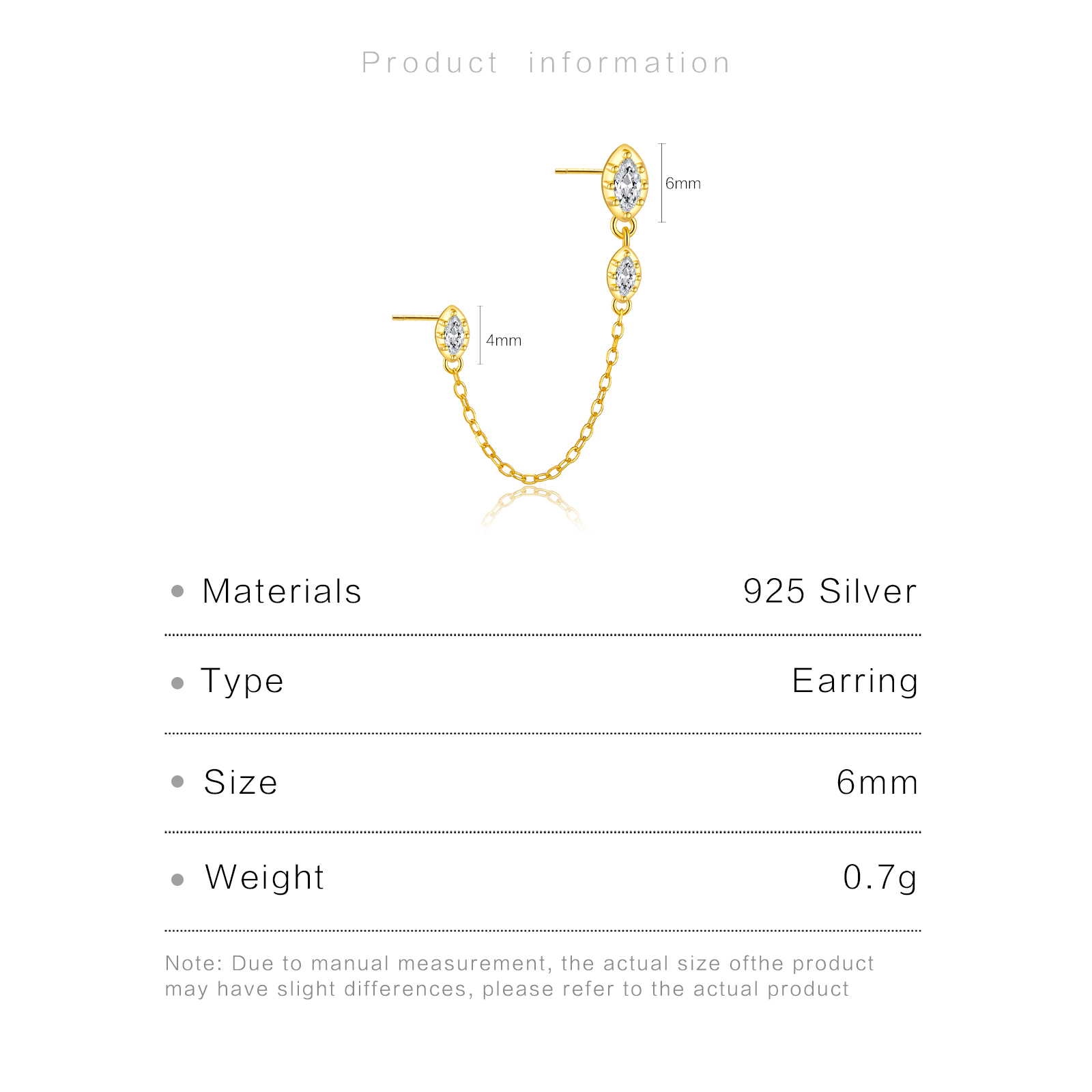 | Size | Large CZ 6mm, Small CZ 4mm, Chain Length 30mm, Total Length 50mm |