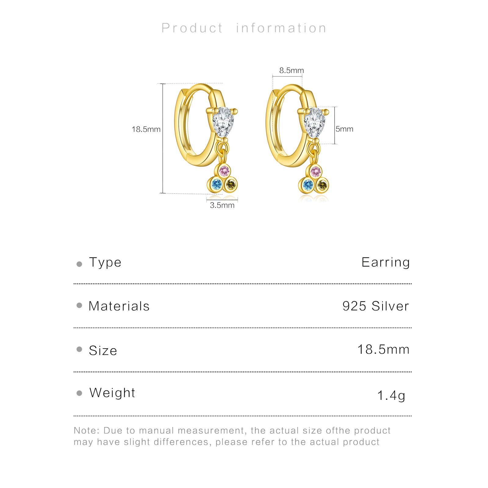 | Size | Inner Diameter 8.5mm, Total Height 18.5mm, Pear CZ 5mm, Round CZ 3.5mm |