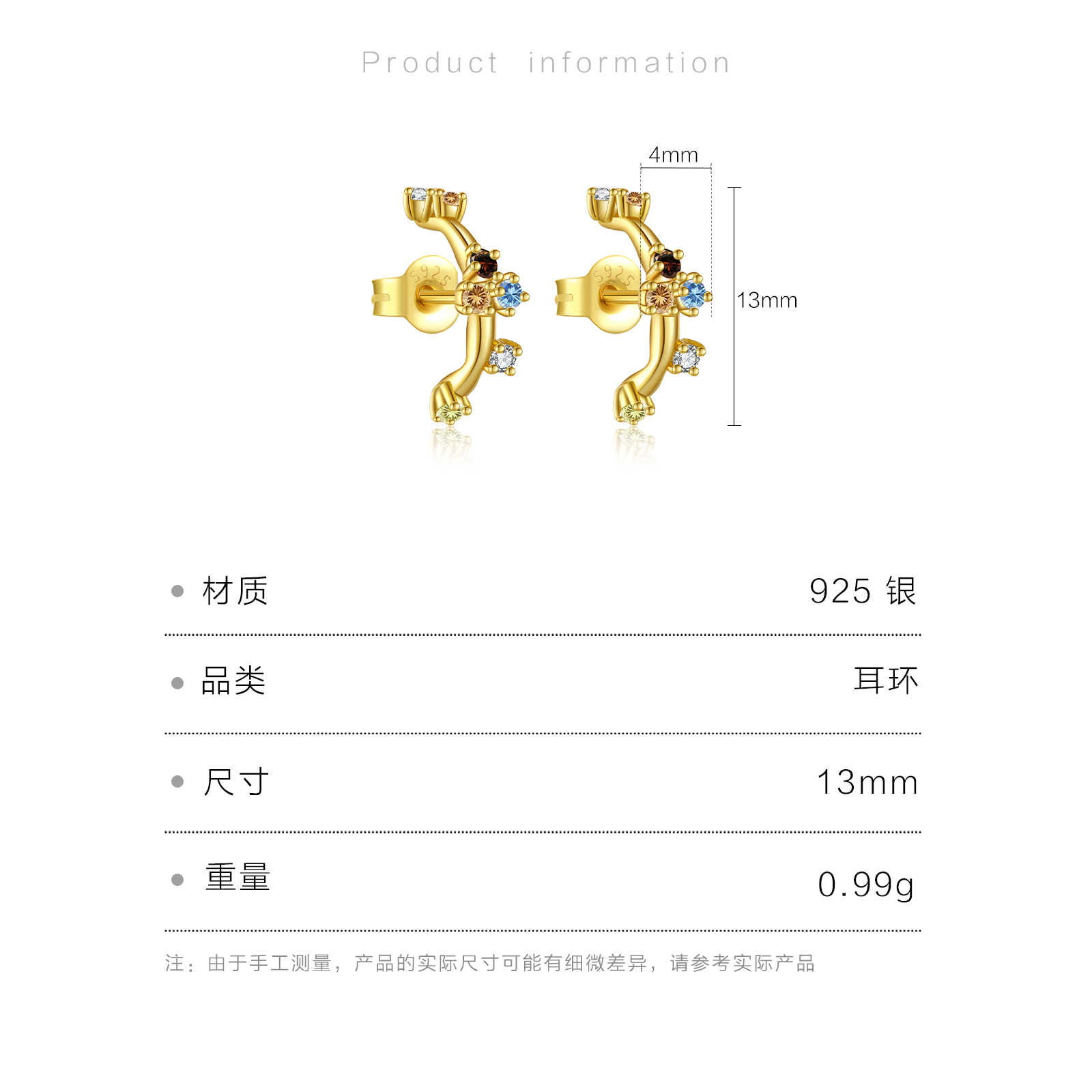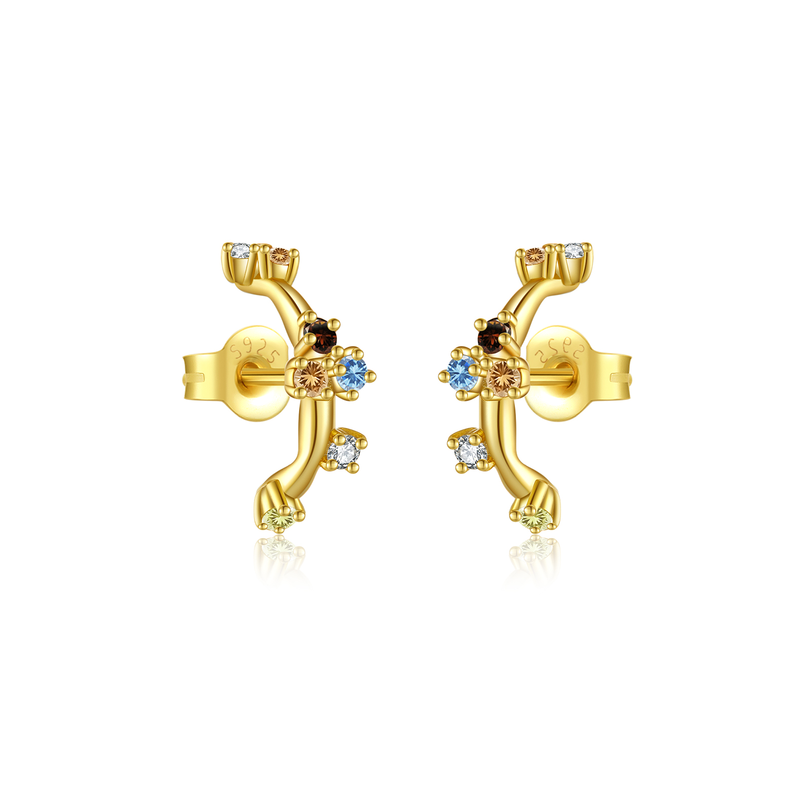 925 Silver Gold Multi-CZ Irregular-Shaped Earrings-MME438