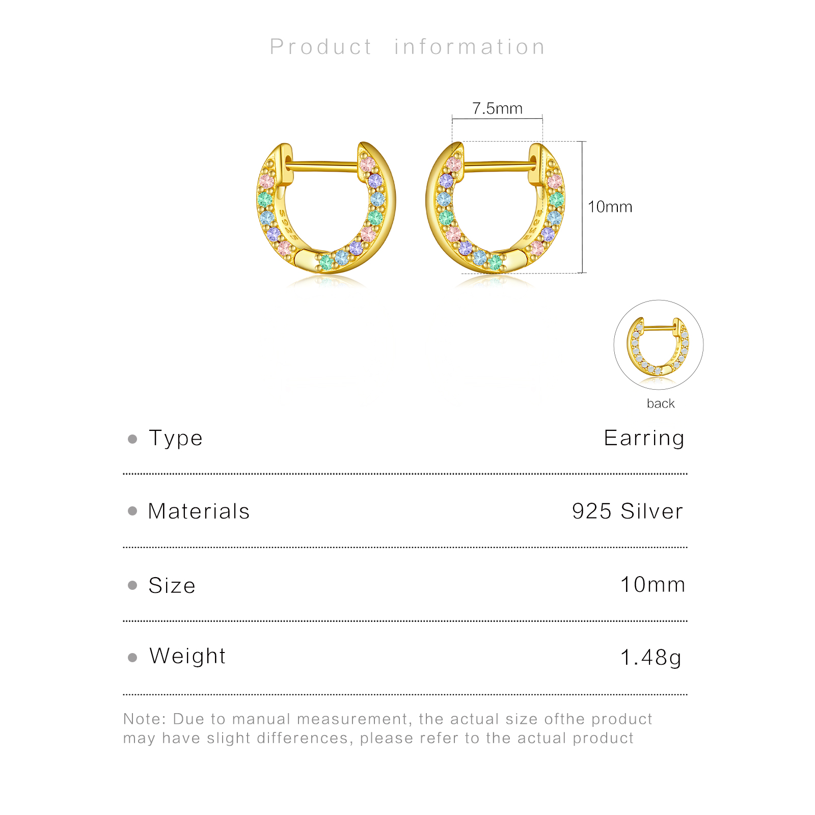 | Size | Inner Diameter 7.5mm, Total Height 10mm, Left & Right Pair |