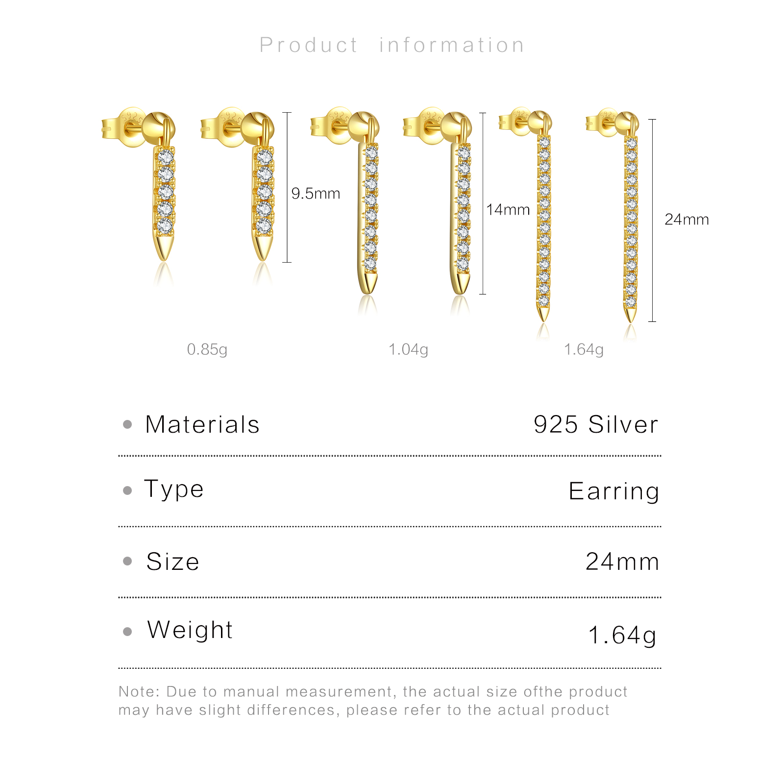 925 Silver Gold Multi-Size CZ Long Studs-MME590-1