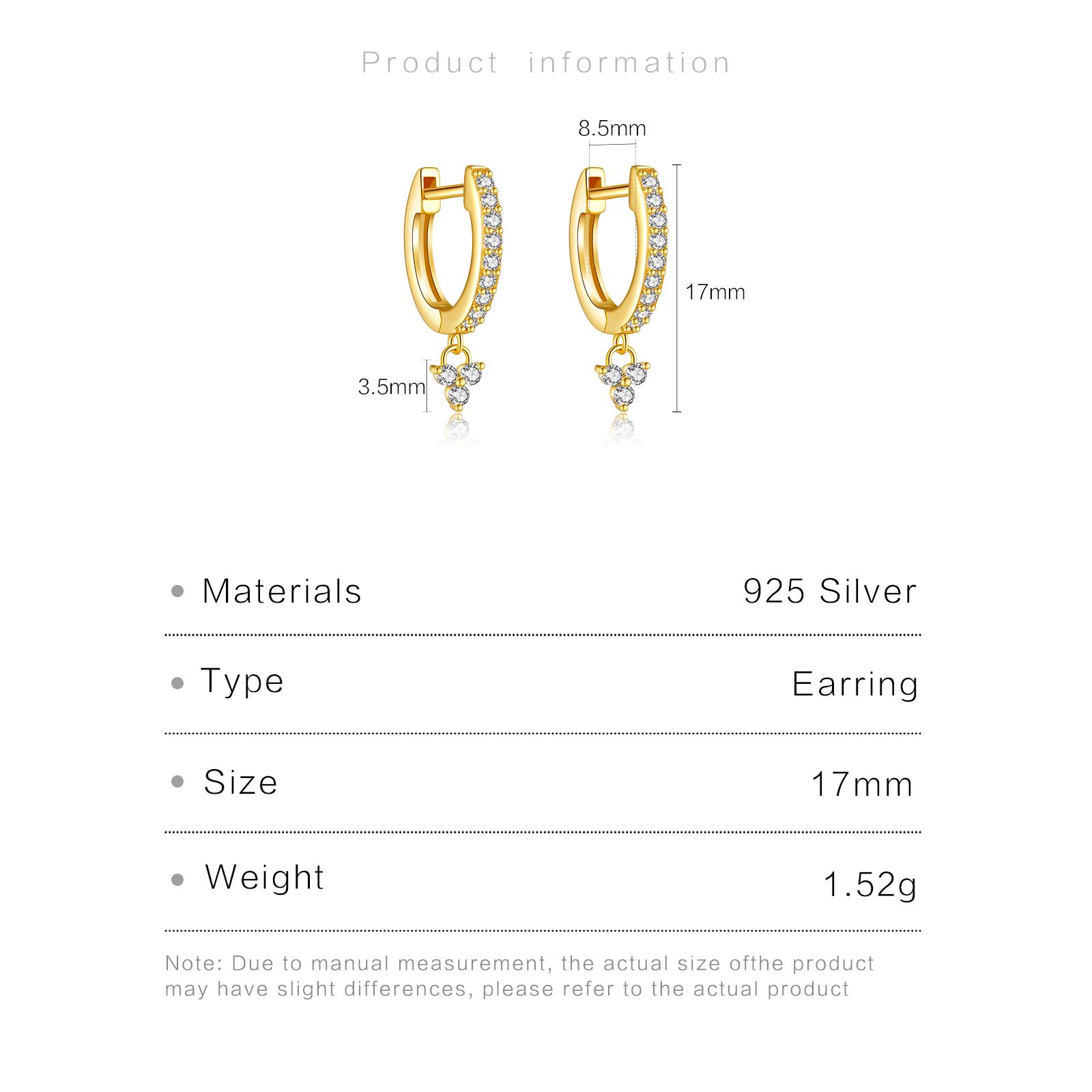 | Size | 17mm Height 8.5mm Inner Diameter 3.5mm Dangling |