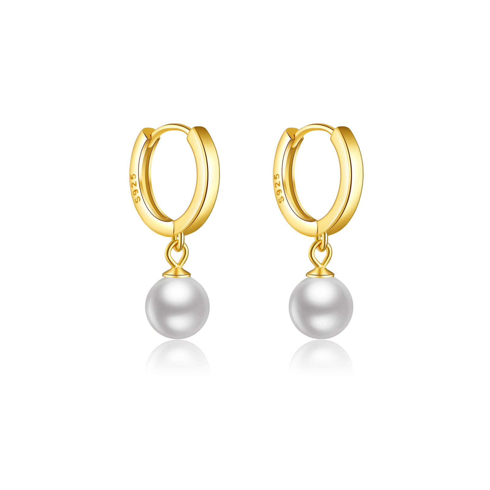 925 Silver Gold-Plated Huggie Earrings with 7mm Pearl Drop – 22.5mm Height, 8.5mm Inner Diameter-MME012
