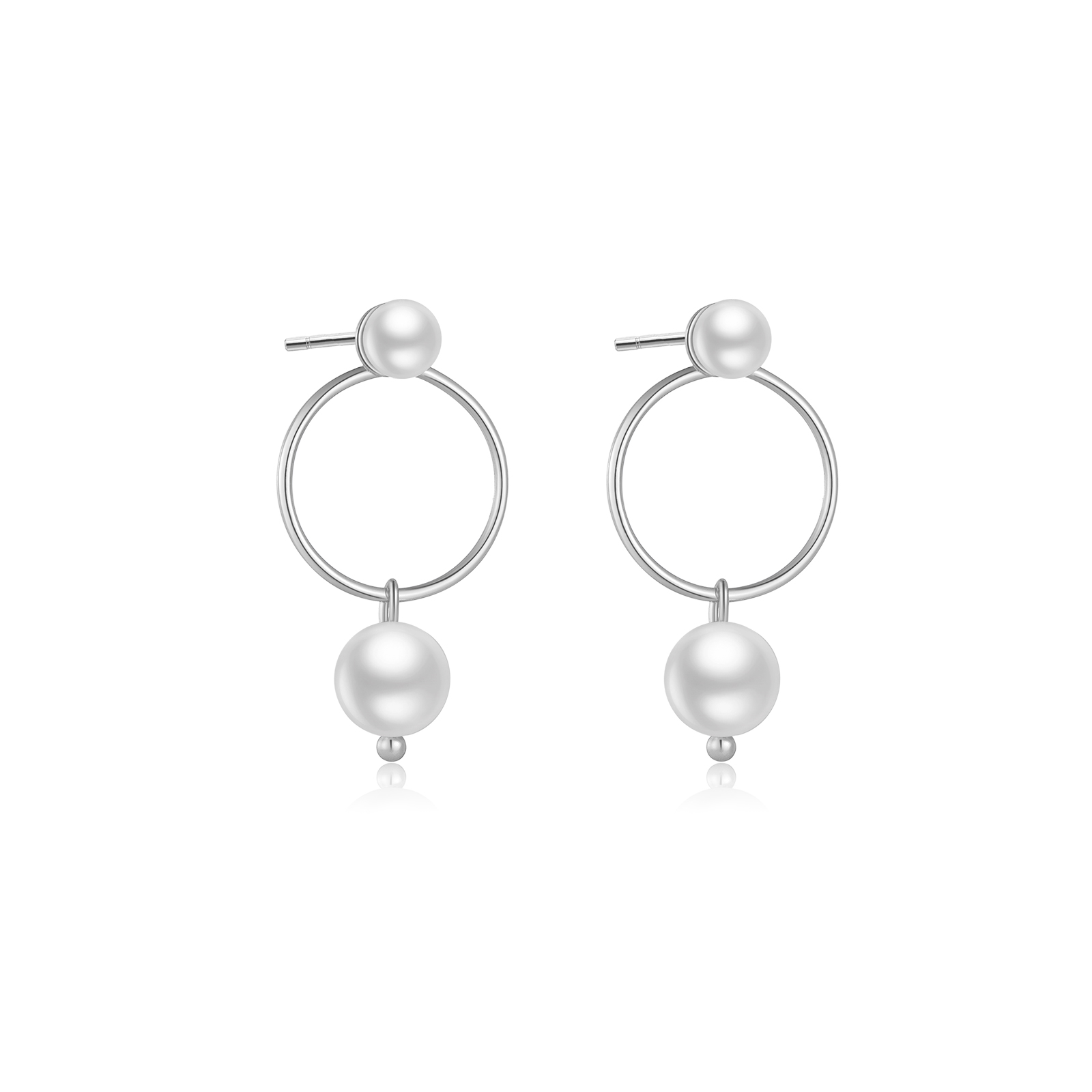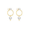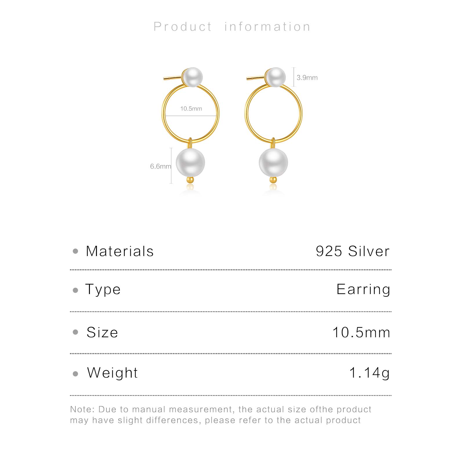 925 Silver Gold Pearl Hoop Drop Earrings-MME906