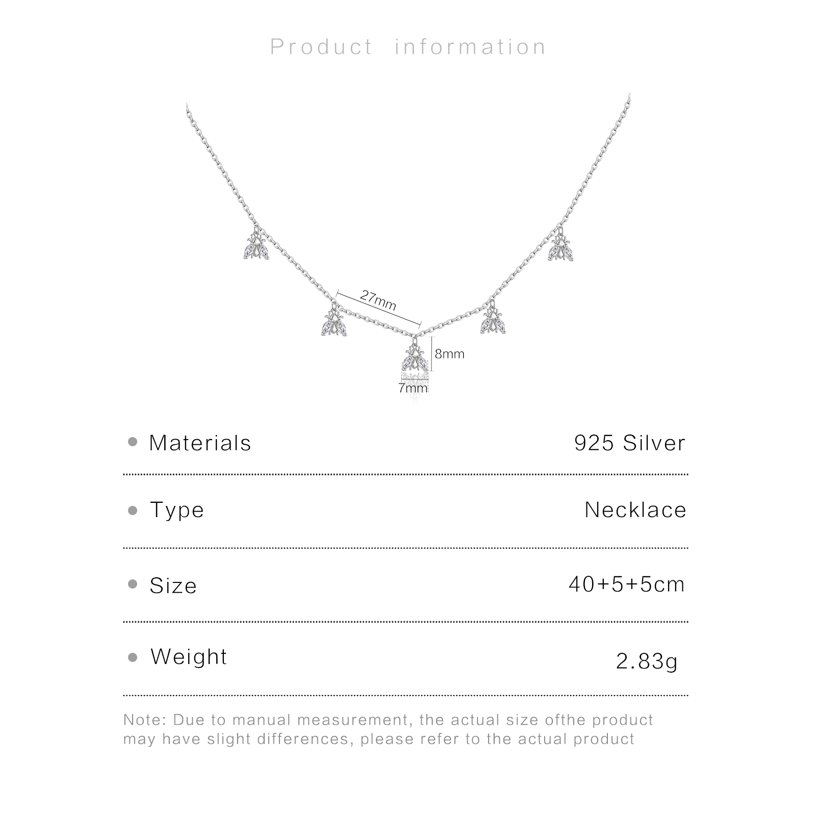 | Size | Pendant 7*8mm Spacing 27mm Chain Length 40+5cm |