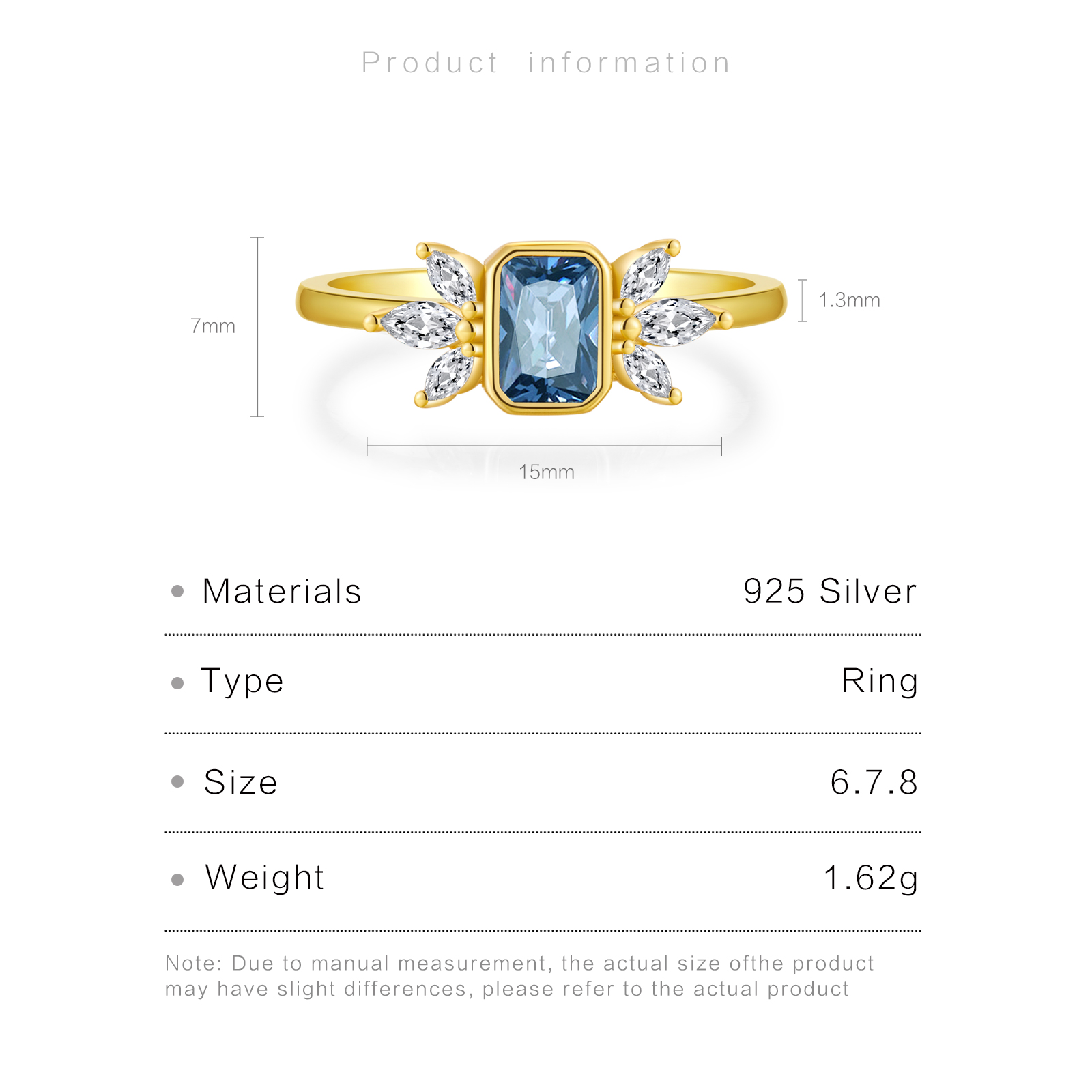 925 Silver Gold-Plated Blue Gem Ring-MMR230